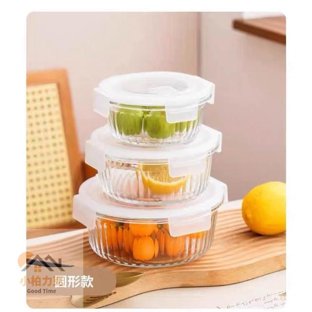 《小柏力克》含發票 可微波水晶玻璃保鮮三件套 密封保鮮碗 保鮮碗三件套 玻璃碗 密封碗 帶蓋碗三件套 保鮮碗 餐碗