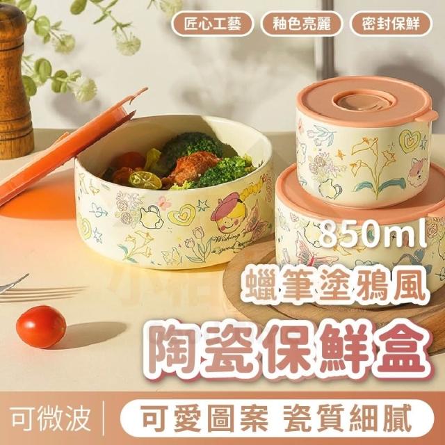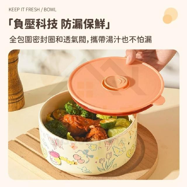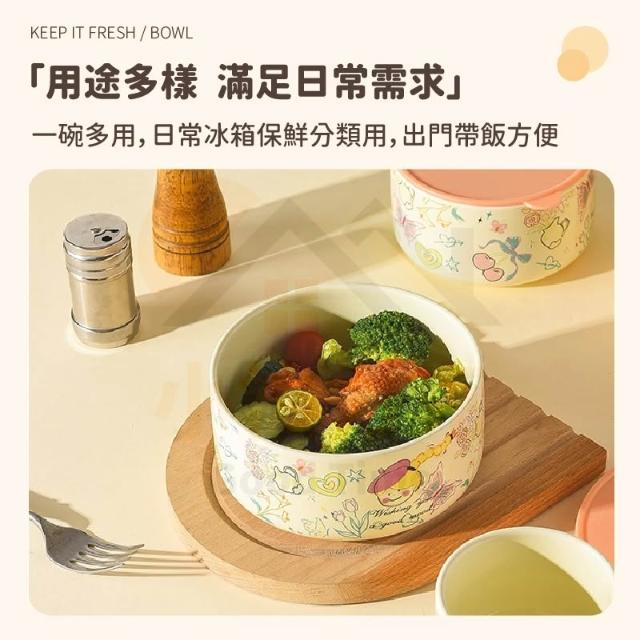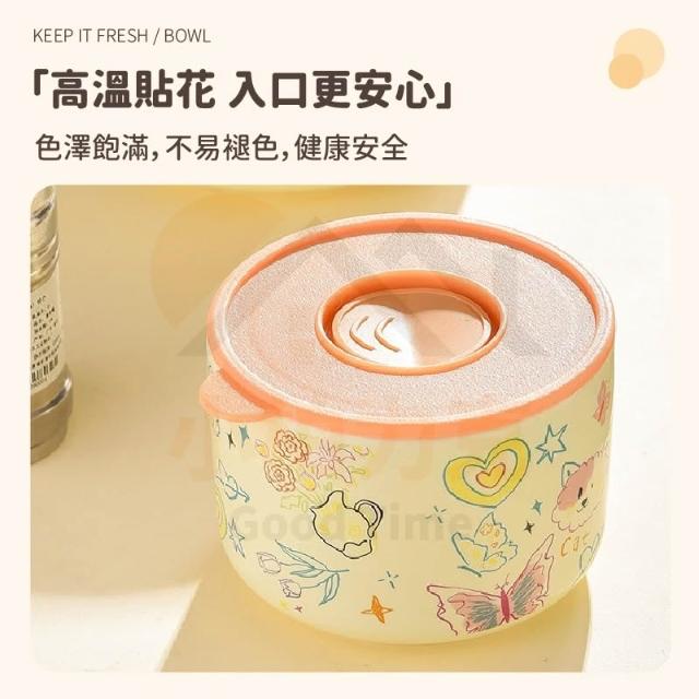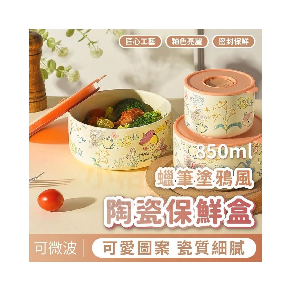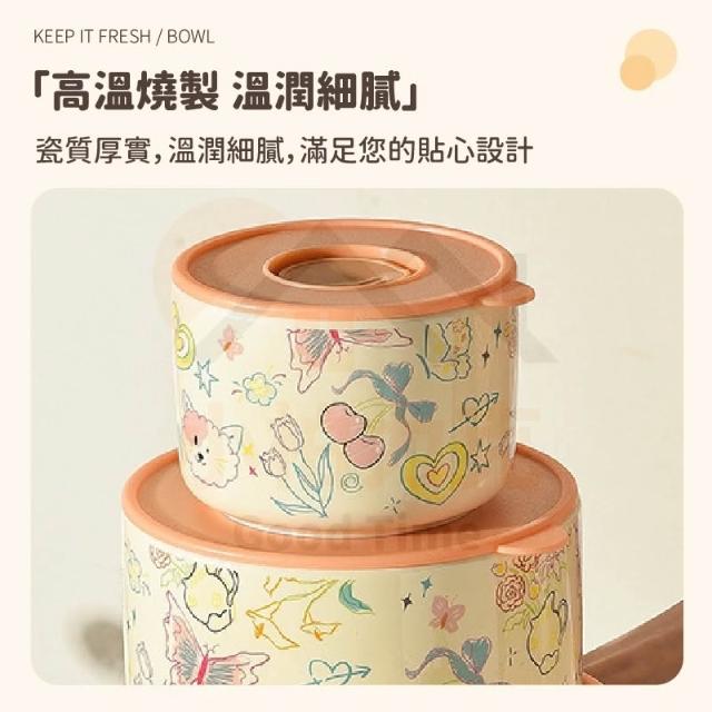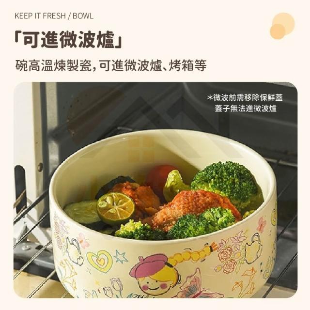 《小柏力克》含發票 少女塗鴉密封陶瓷碗 850ml 密封陶瓷碗 陶瓷保鮮碗 泡麵碗 餐碗 甜點碗 湯碗 飯碗 帶蓋碗 碗