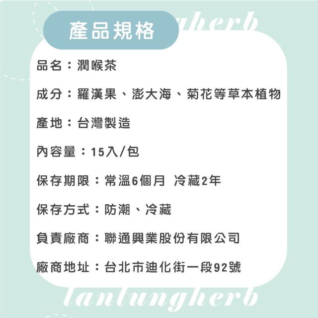 聯通漢芳台灣現貨 潤喉茶 15/50/100入 潤喉 羅漢果 澎大海 草本茶 茶包 漢方 無咖啡因 無糖