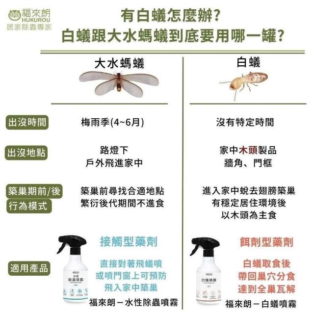 福來朗白蟻雙效2入組500ml|白蟻噴霧*1+水性除蟲噴霧*1|白蟻問題對症下藥|殺白蟻|白蟻藥|白蟻誘餌|大水螞蟻適用