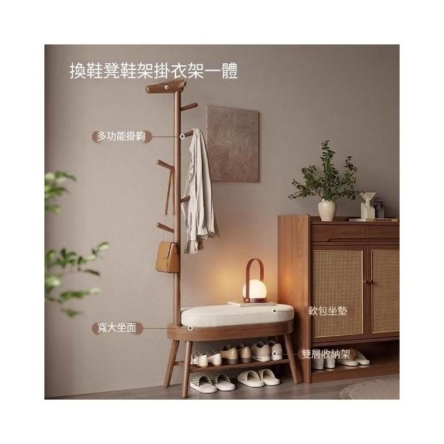 實木長頸鹿換鞋凳掛衣架一體小戶型家用門口玄關可坐穿鞋櫃衣帽架