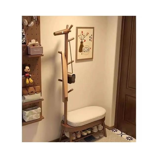 實木長頸鹿換鞋凳掛衣架一體小戶型家用門口玄關可坐穿鞋櫃衣帽架