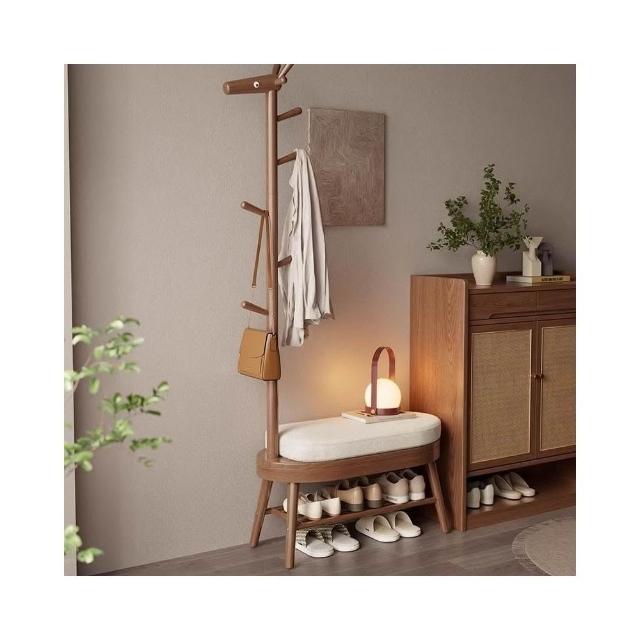 實木長頸鹿換鞋凳掛衣架一體小戶型家用門口玄關可坐穿鞋櫃衣帽架