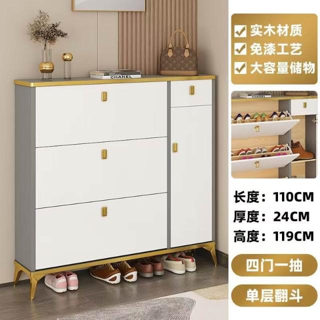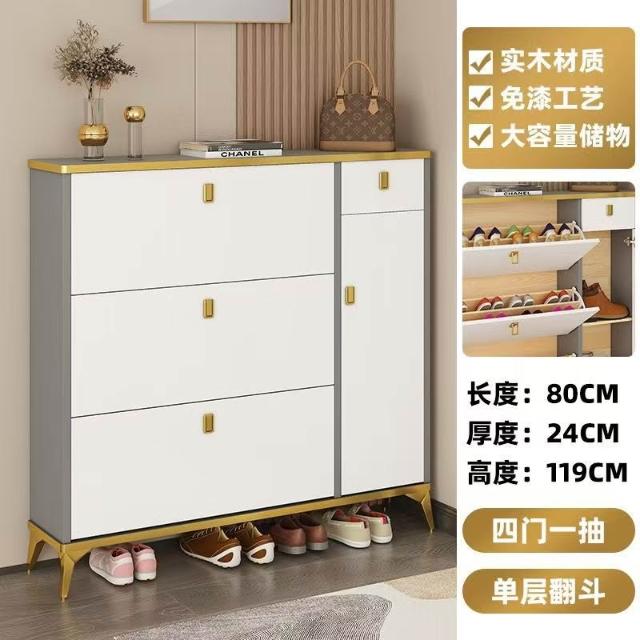 入戶輕奢鞋櫃實木超薄家用門口意式超薄翻鬥鞋櫃簡約現代儲物櫃子