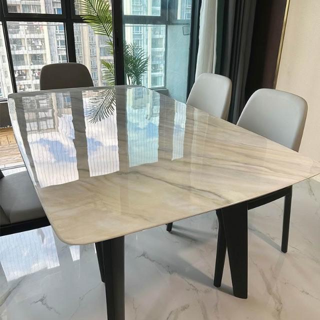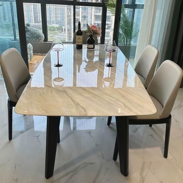 全實木腿超晶石餐桌感天然大理石微晶石彩晶石輕奢北歐吃飯桌