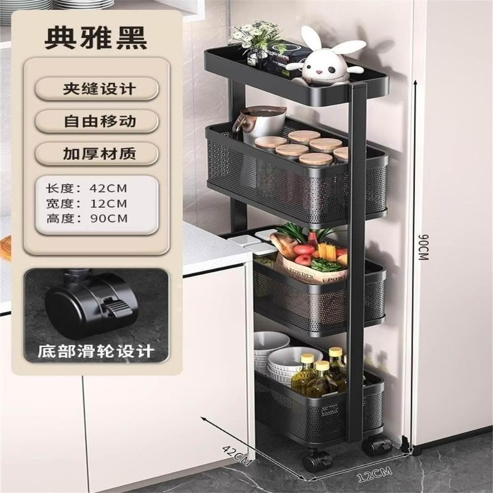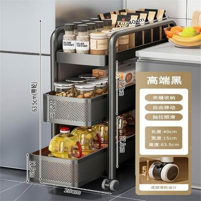 夾縫置物架 窄款落地多層冰箱縫隙收納架 家用衛生間廚房移動小推車 可移動置物架 冰箱側麵收納架 窄縫置物架 醬油收廚