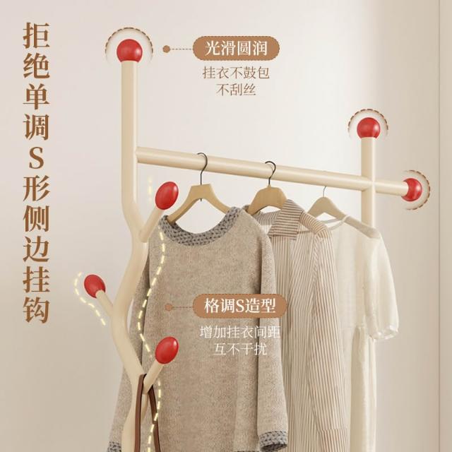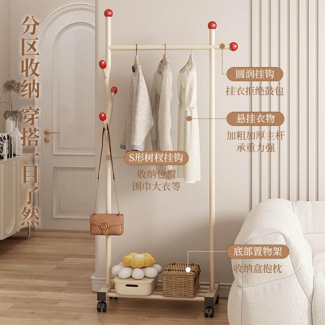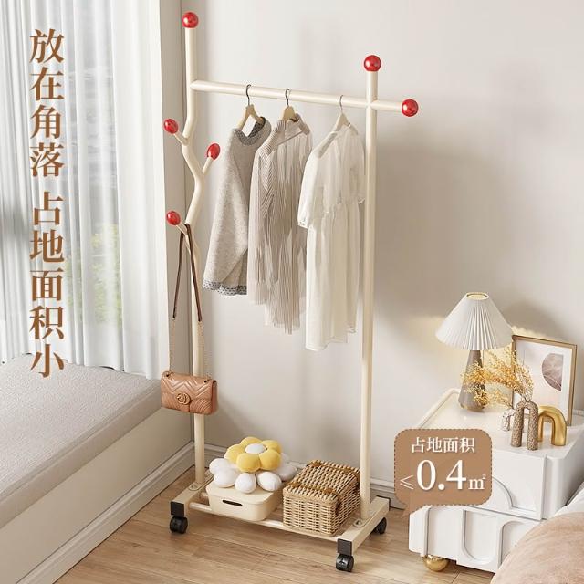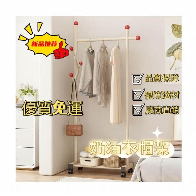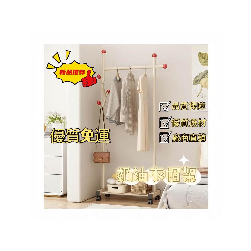 💖優質💖『可打統編』奶油衣帽架 落地臥室家用室內掛衣架 陽臺涼曬掛衣杆 宿舍移動晾衣架🌺