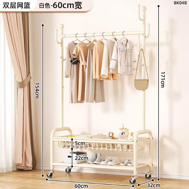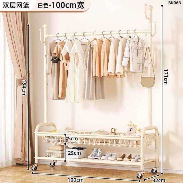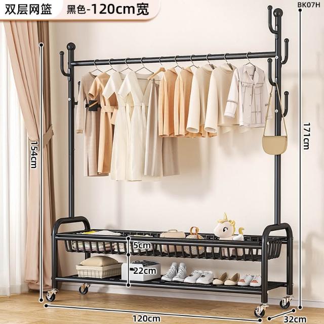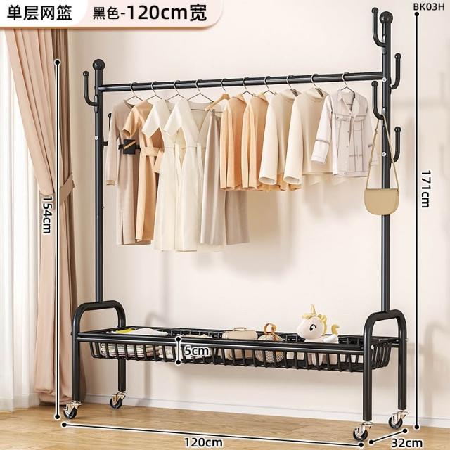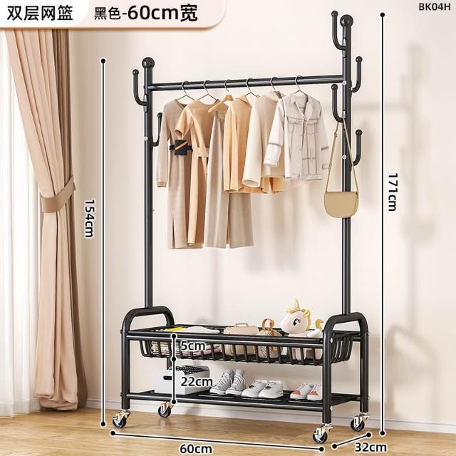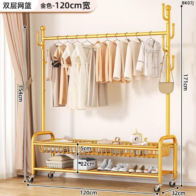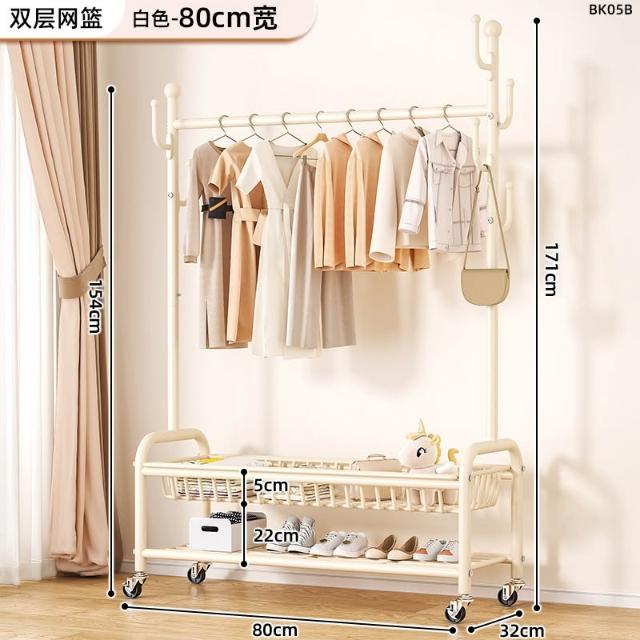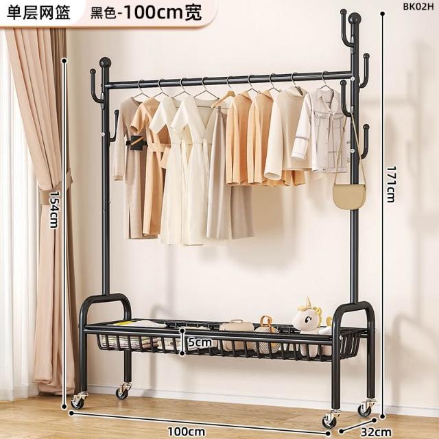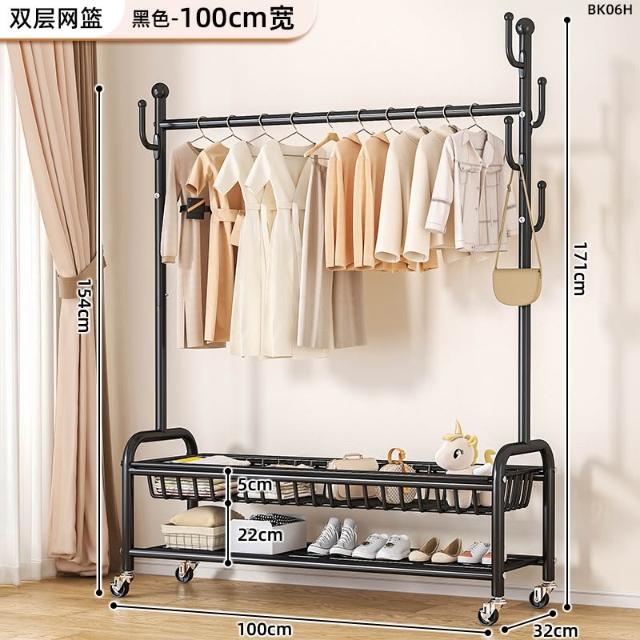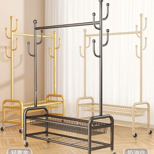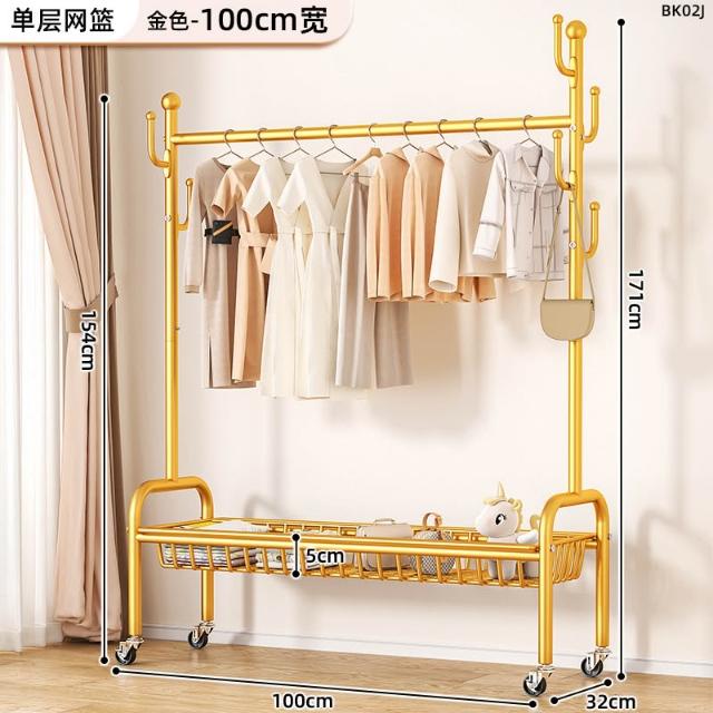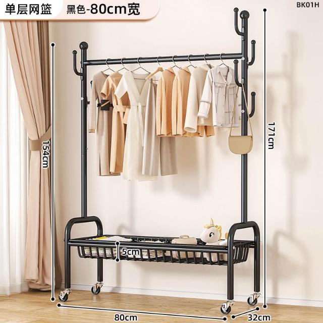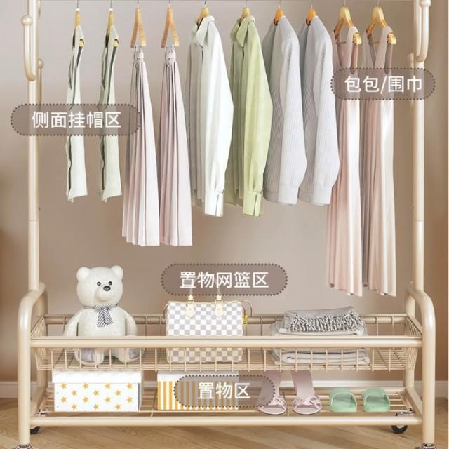 臥室衣帽架落地晾衣架室內簡易杆衣帽架可移動陽臺掛衣架落地衣架