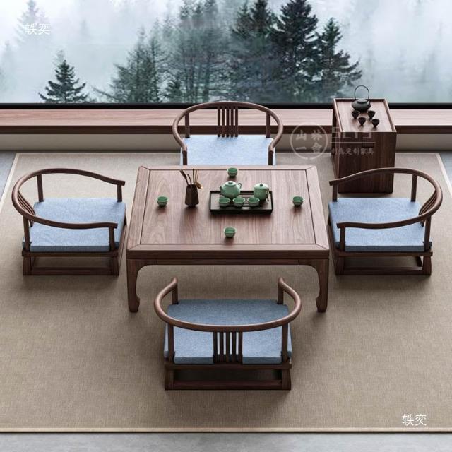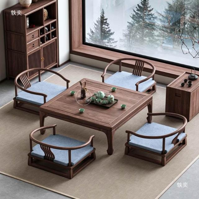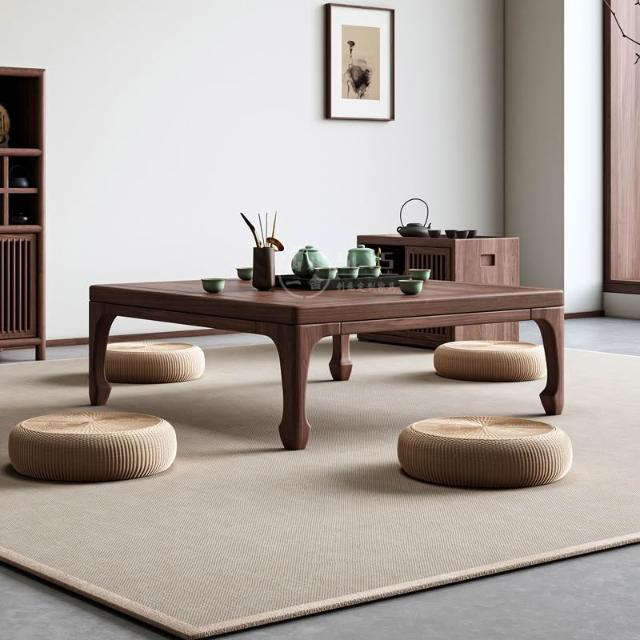 日式榻榻米茶桌禪意新中式實木飄窗小茶炕桌幾和室方形矮桌椅組合