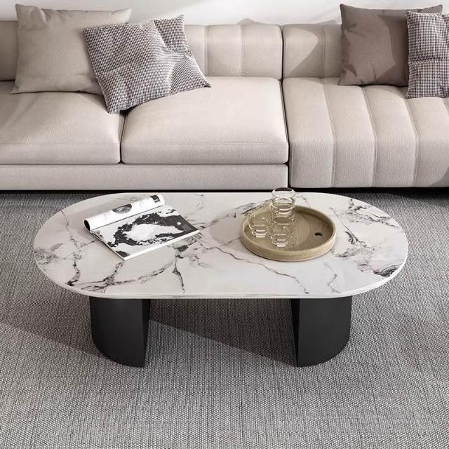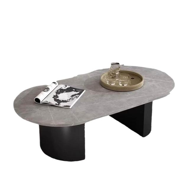 橢圓形岩板茶几半圓穩固桌腿加厚簡約家用客廳辦公茶桌輕奢新款