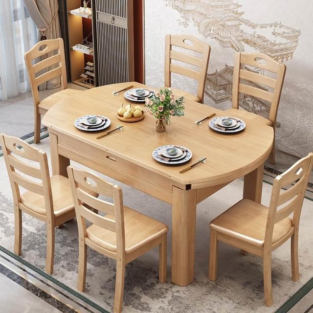 簡約現代伸縮折疊實木餐桌可變圓桌家用新中式加粗加厚餐桌椅