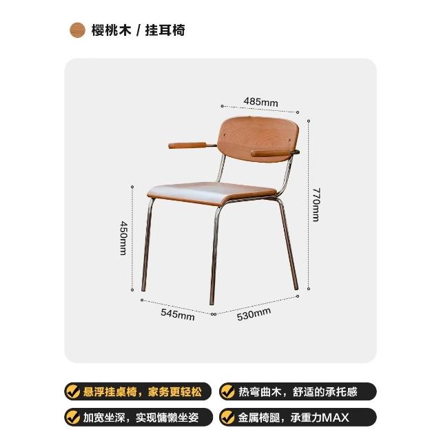 掛耳餐椅家用能掛桌子的櫻桃木靠背椅網紅實木扶手不銹鋼辦公椅子