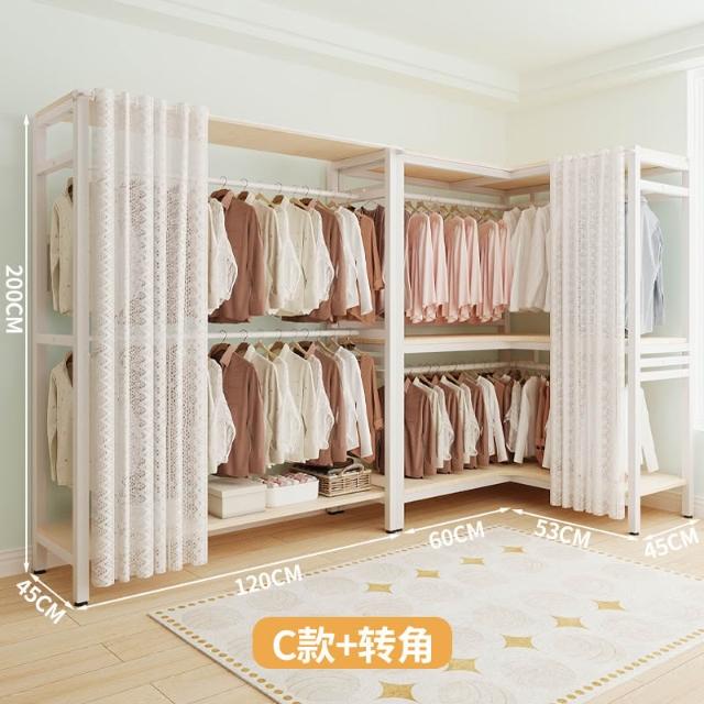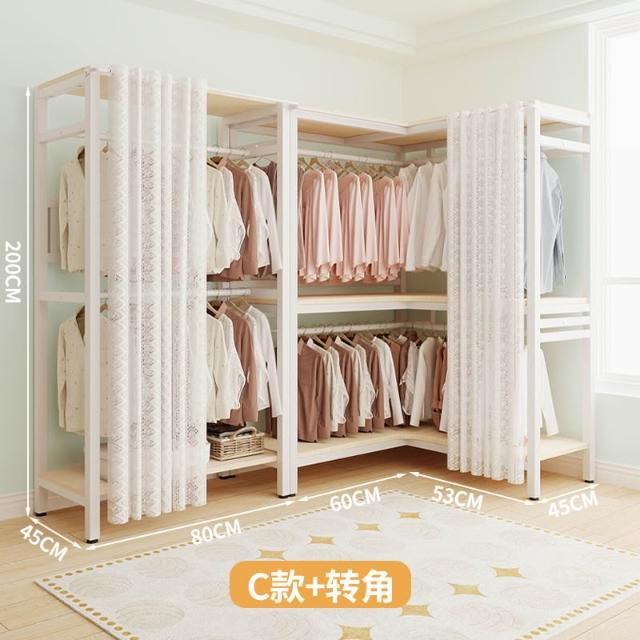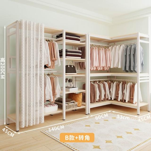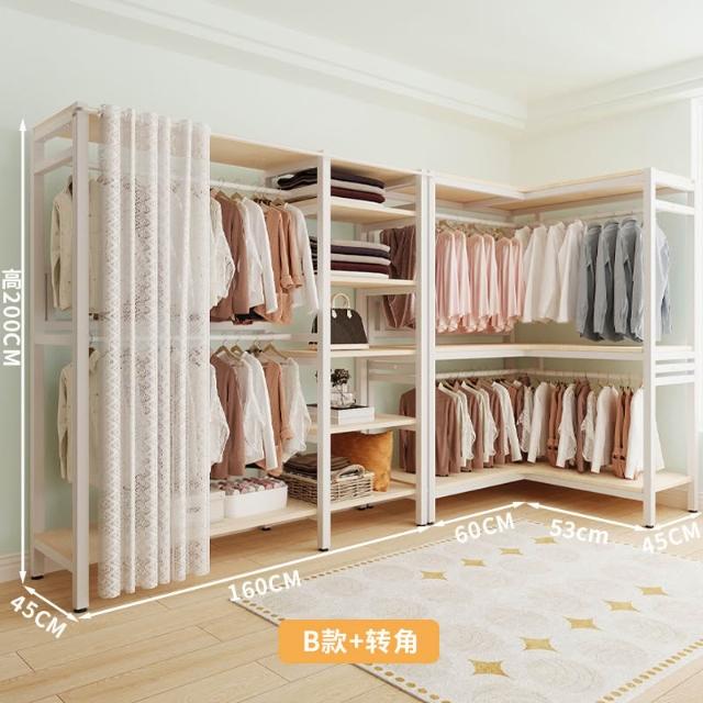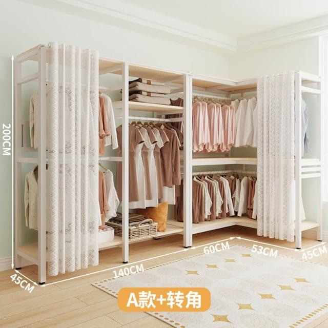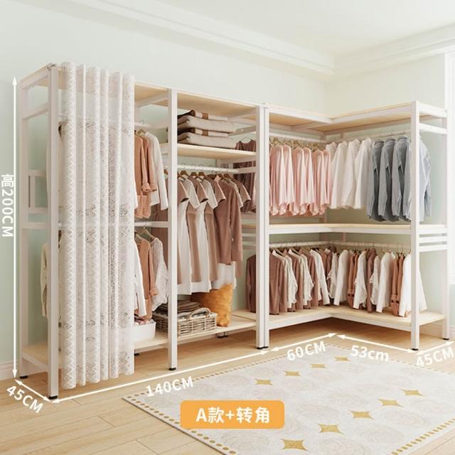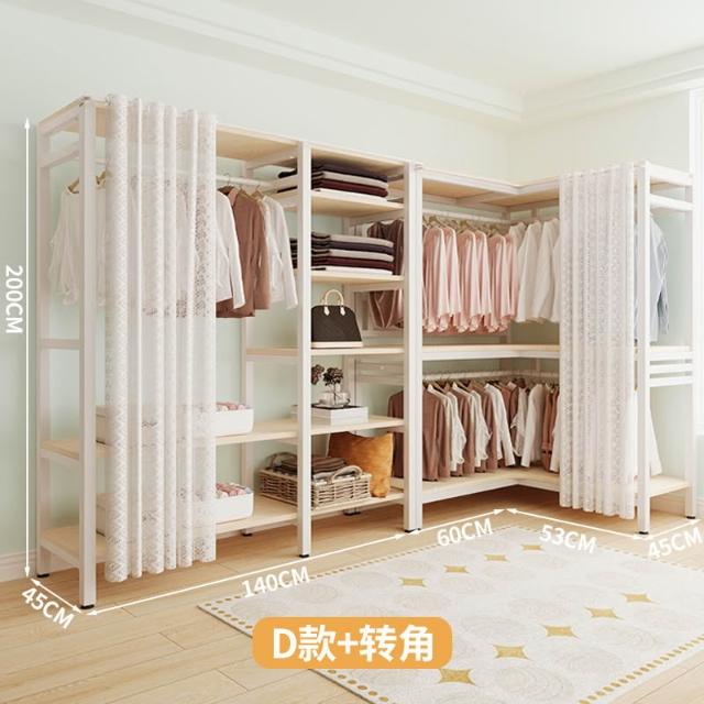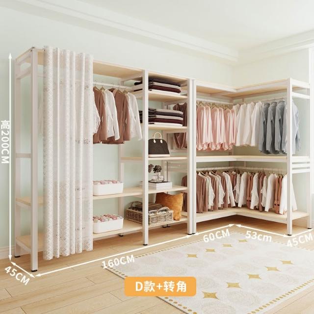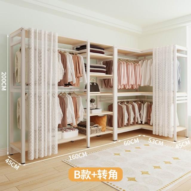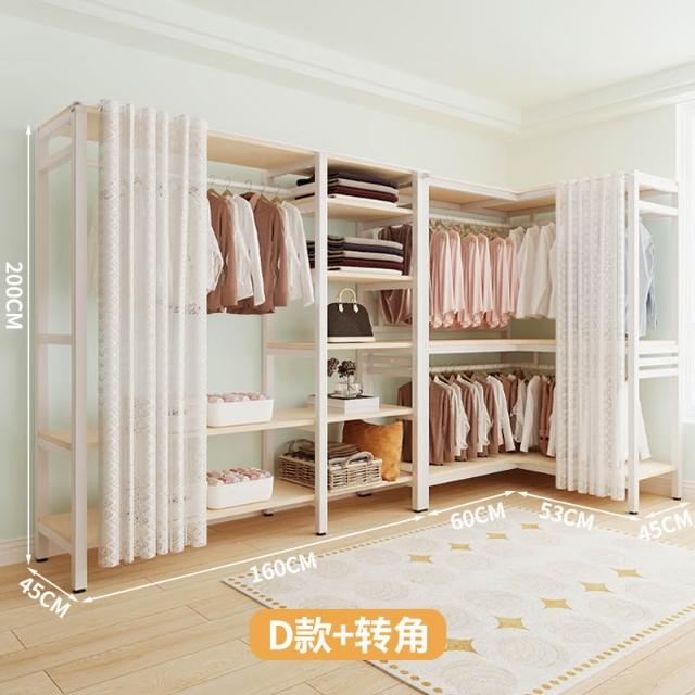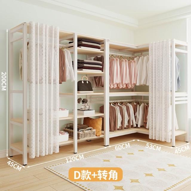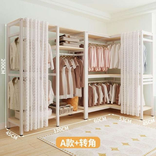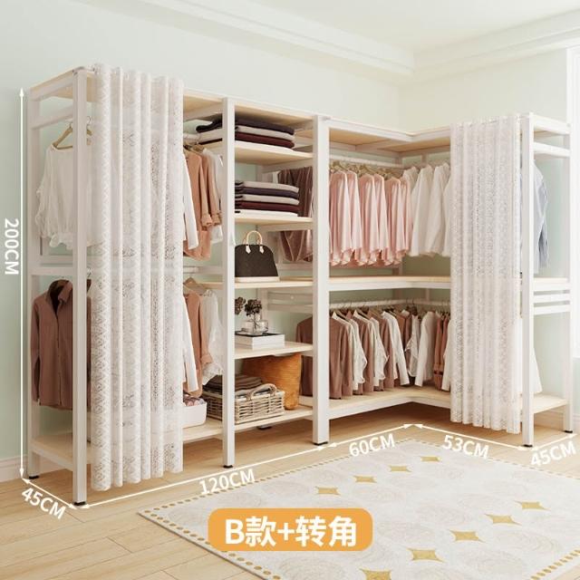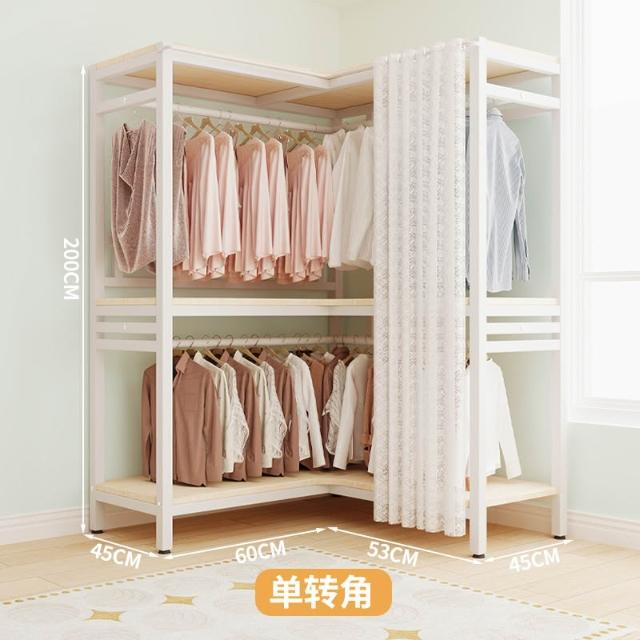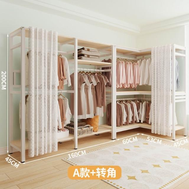 轉角衣櫃家用臥室現代簡約開放式衣帽間簡易組裝金屬鋼木組合衣櫥