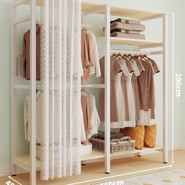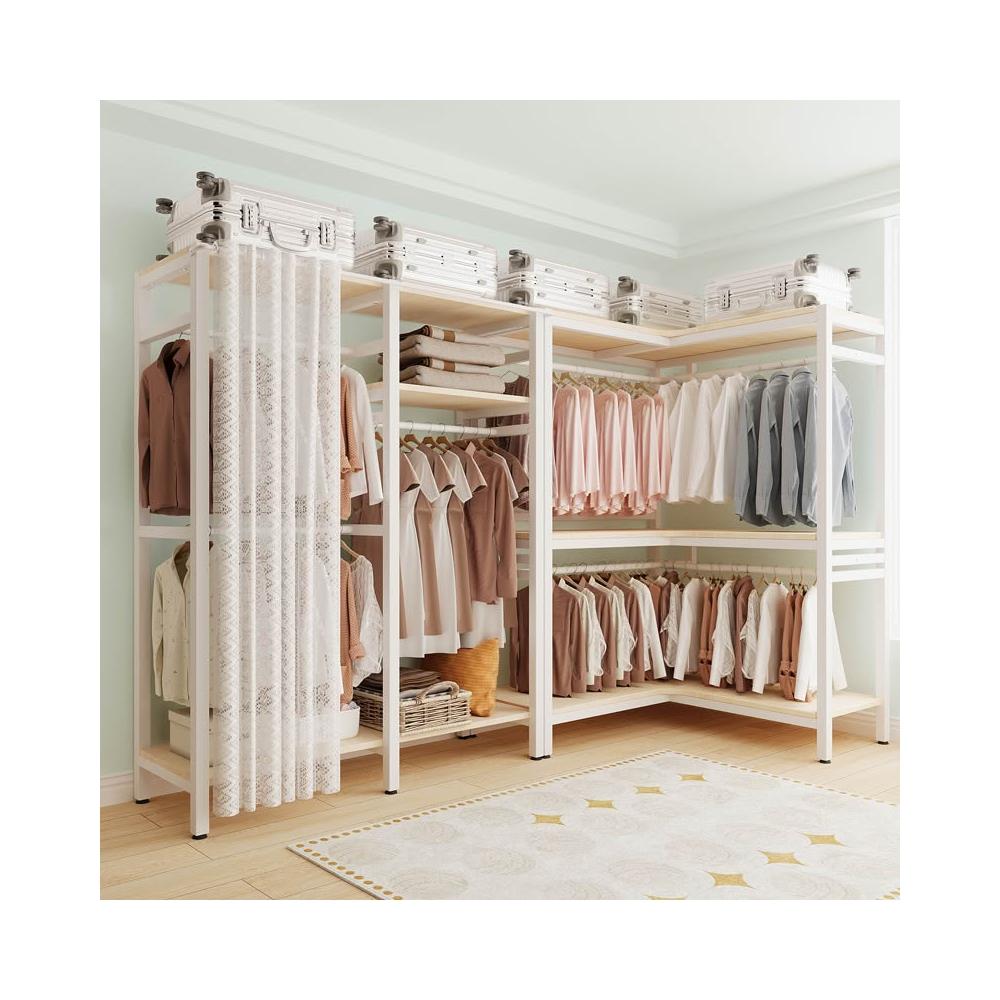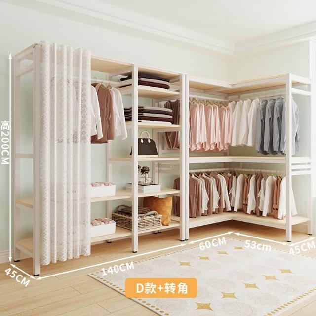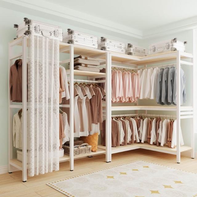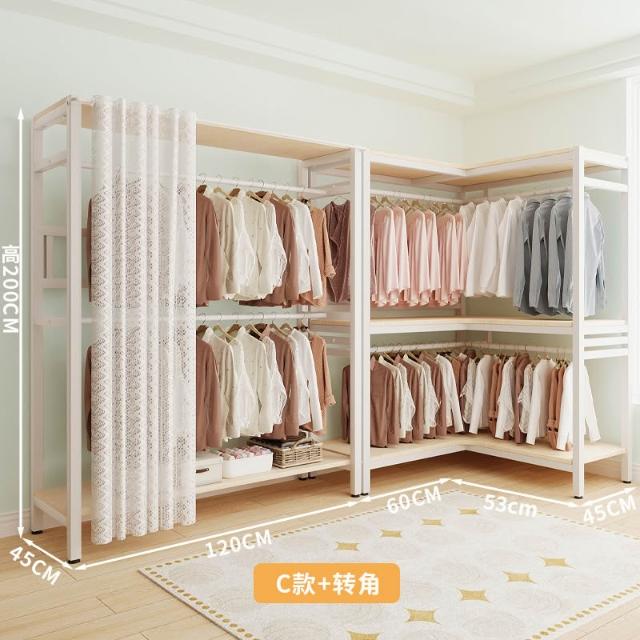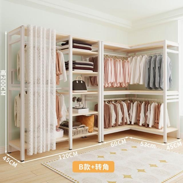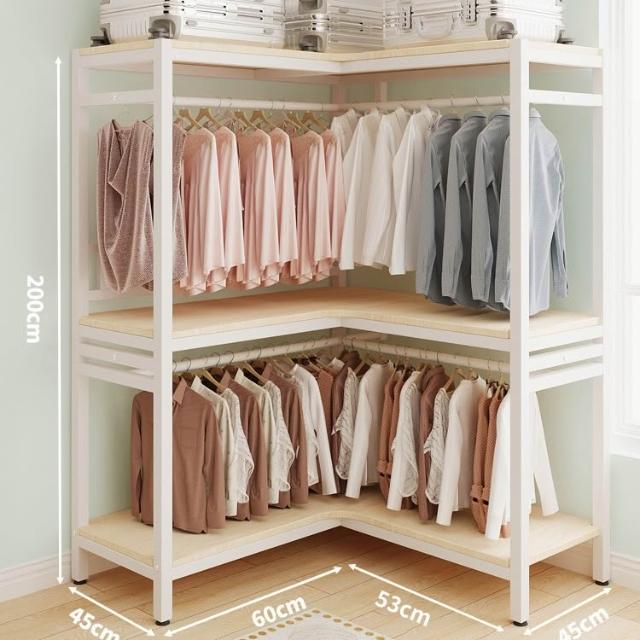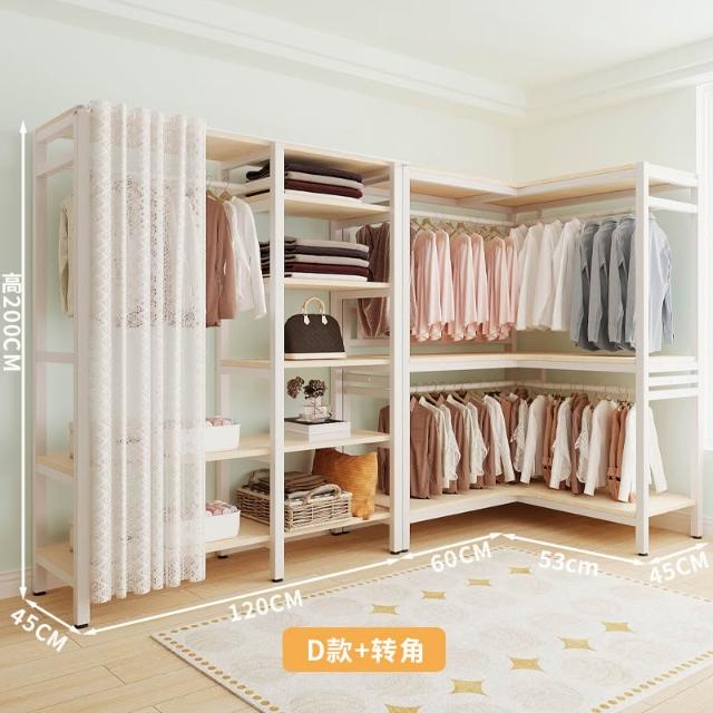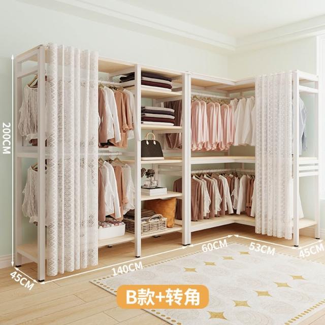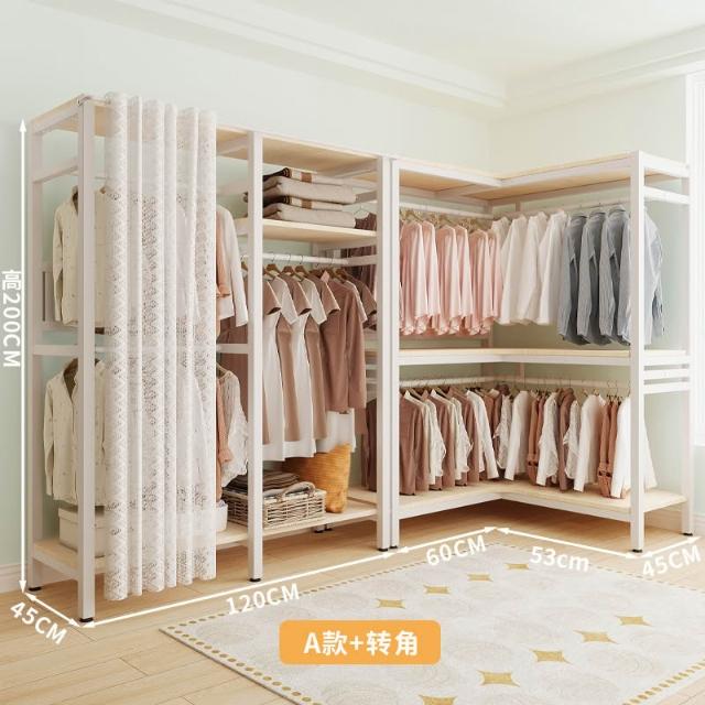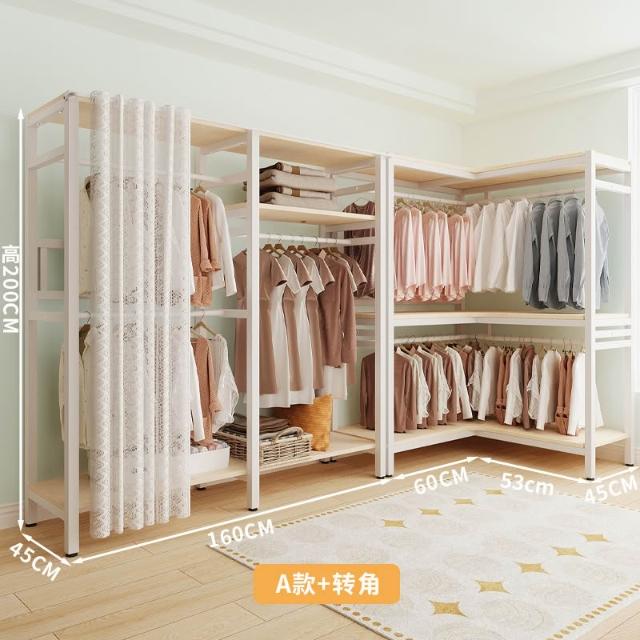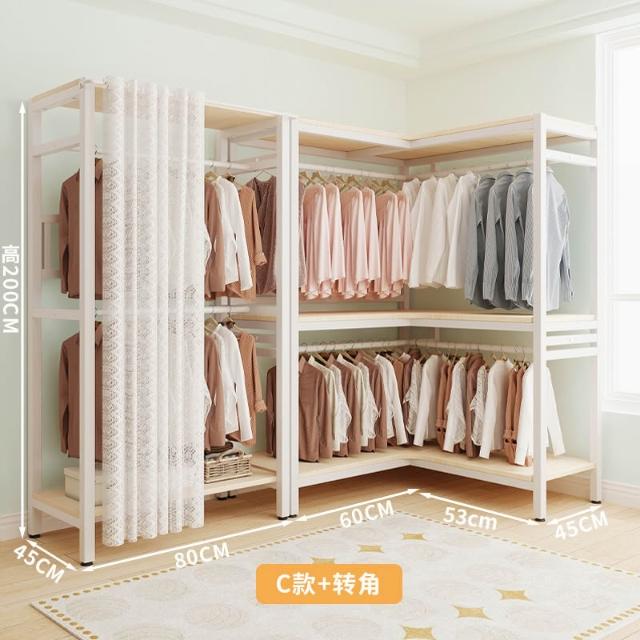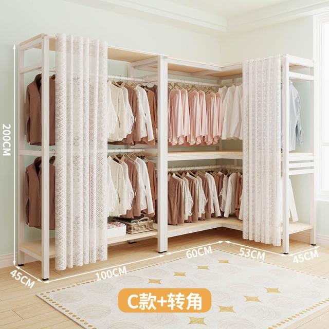 轉角衣櫃家用臥室現代簡約開放式衣帽間簡易組裝金屬鋼木組合衣櫥