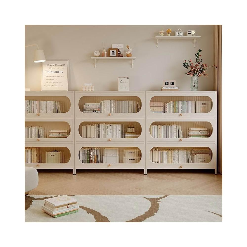 書架家用矮書櫃落地防塵翻蓋帶門收納櫃子儲物一體靠牆鋼制置物架