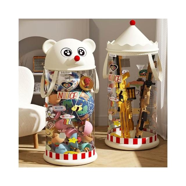 ♡玩具箱創意手提放娃娃收納桶透明大容量整理筐防塵帶蓋分類