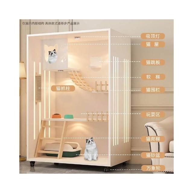 猫别墅家用豪华猫屋室内全景猫柜猫窝爬架一体猫咪房子透气猫笼子貓別墅 貓籠子超大防水貓別墅 實木貓籠 貓跳台 家用大型寵物