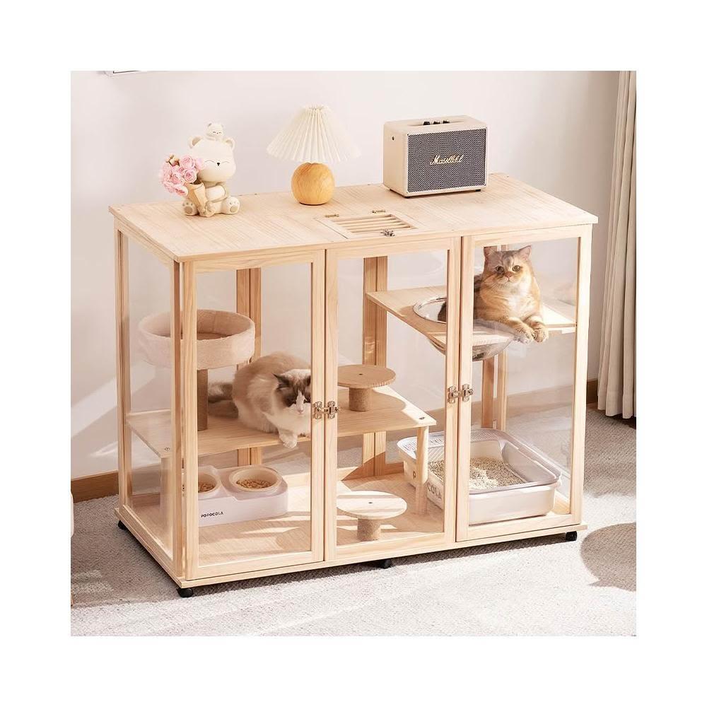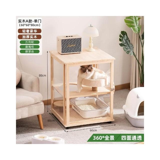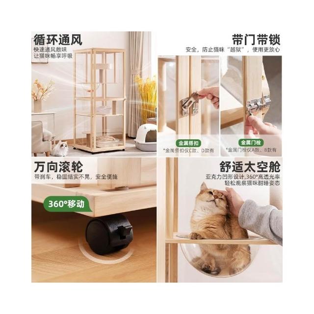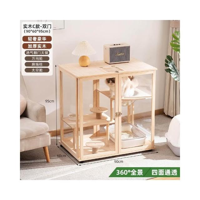 猫别墅猫屋家用室内实木猫柜猫舍猫笼子猫咪爬架一体超大自由空间貓別墅 貓籠子超大防水貓別墅 喫 家用大型寵物