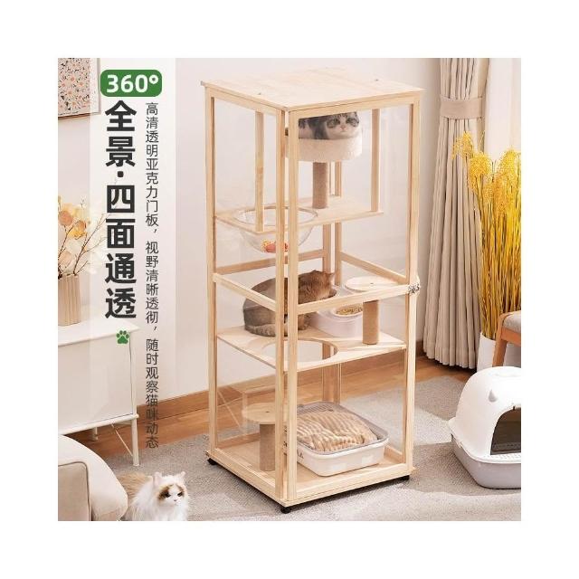猫别墅猫屋家用室内实木猫柜猫舍猫笼子猫咪爬架一体超大自由空间貓別墅 貓籠子超大防水貓別墅 喫 家用大型寵物