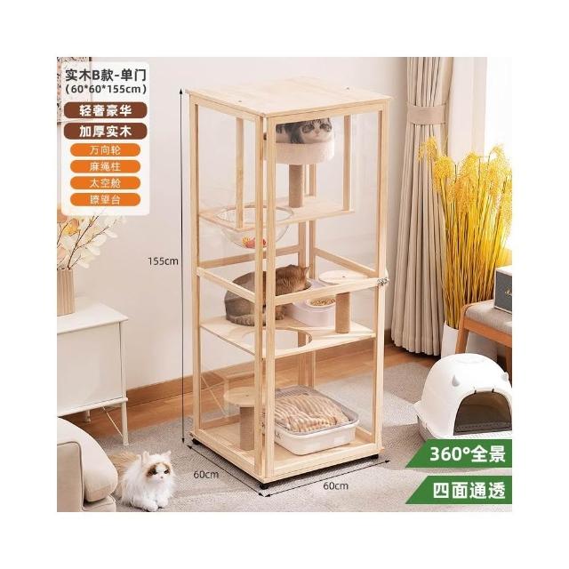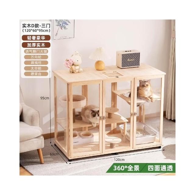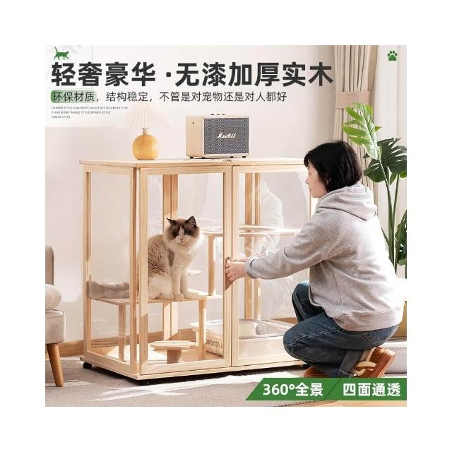 猫别墅猫屋家用室内实木猫柜猫舍猫笼子猫咪爬架一体超大自由空间貓別墅 貓籠子超大防水貓別墅 喫 家用大型寵物