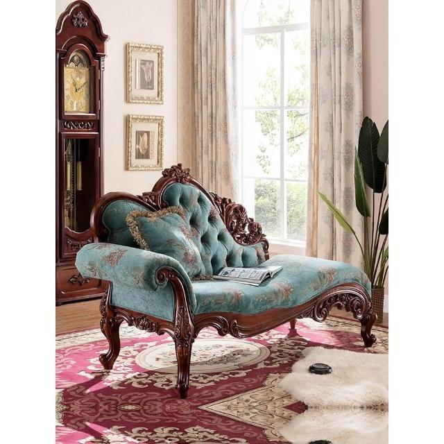 美式实木贵妃椅布艺阳台休闲太妃椅沙发卧室美人榻欧式单独小躺椅