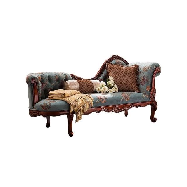 美式实木贵妃椅布艺阳台休闲太妃椅沙发卧室美人榻欧式单独小躺椅