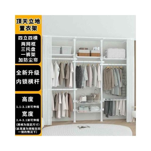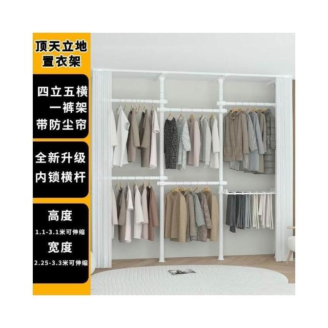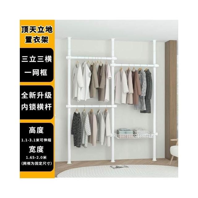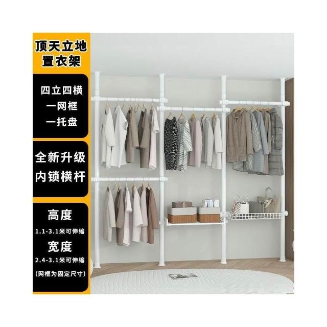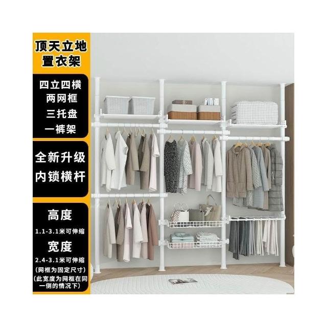 頂天立地置衣 架 加粗加厚衣帽間 架 子組裝置物 櫃 簡易落地臥室掛衣桿