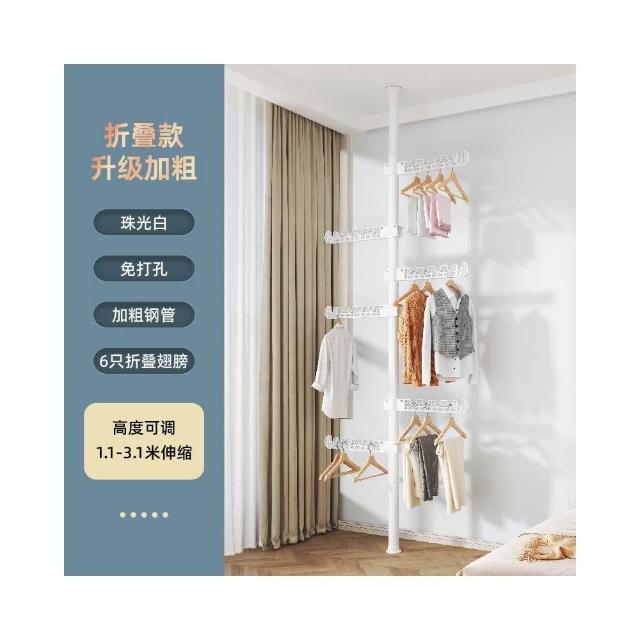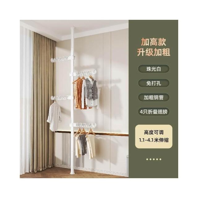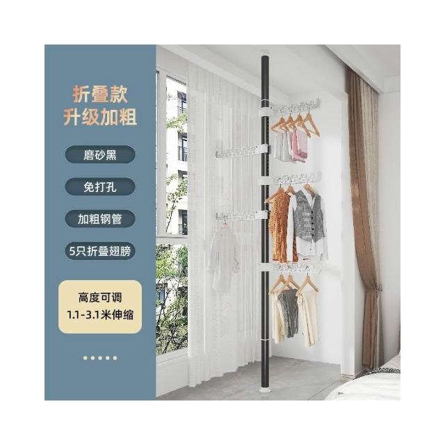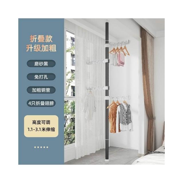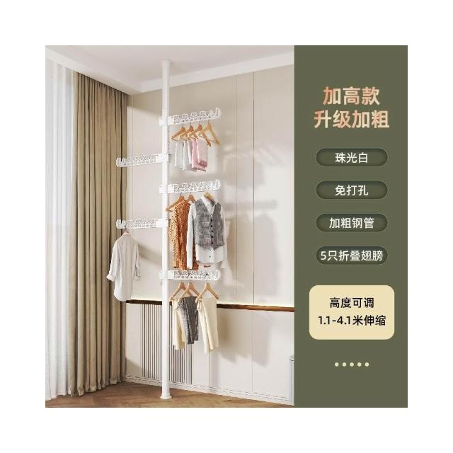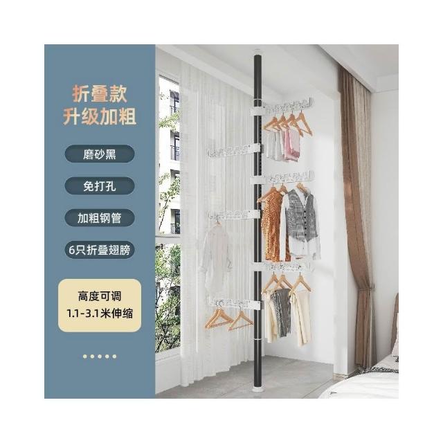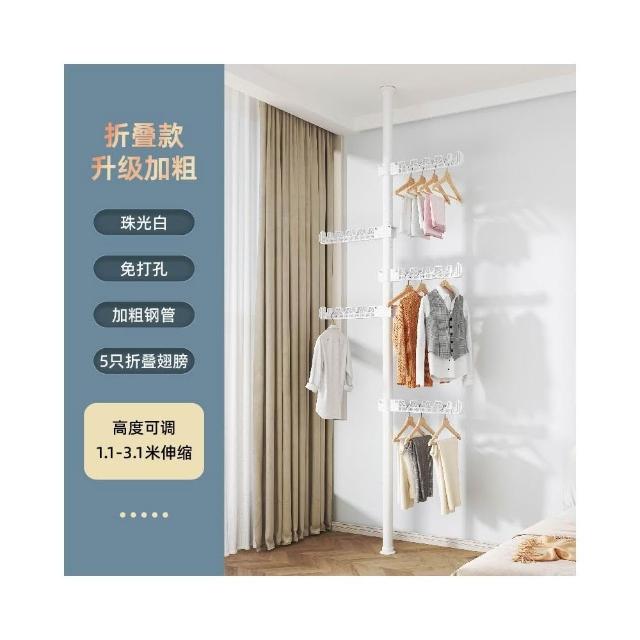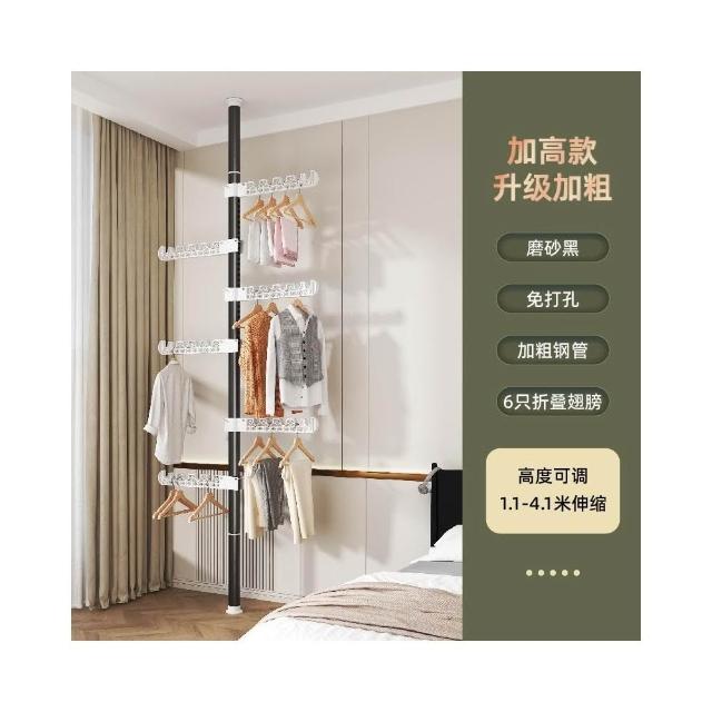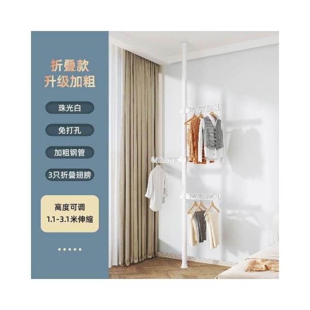 顶天立地晾衣架落地家用卧室阳台免打孔伸缩晒衣杆省空间挂衣神器