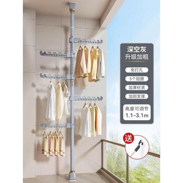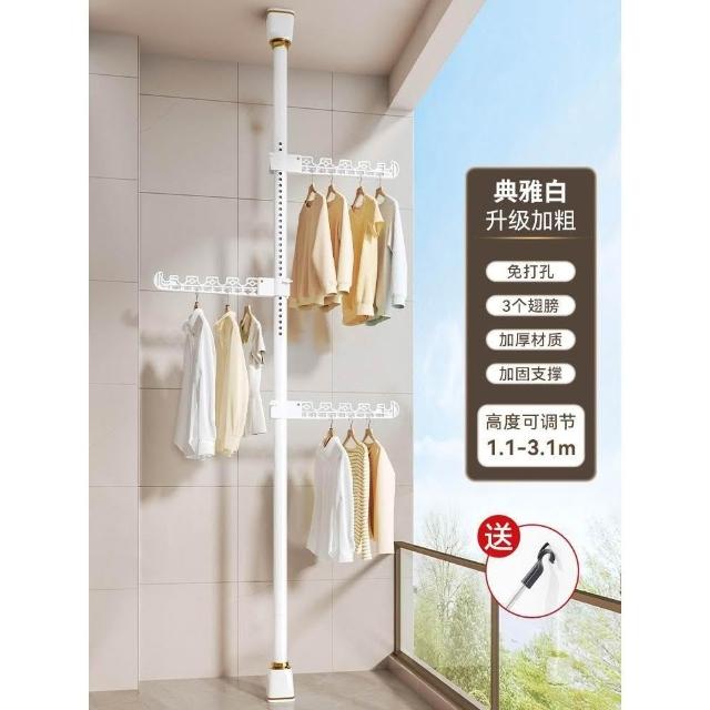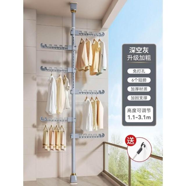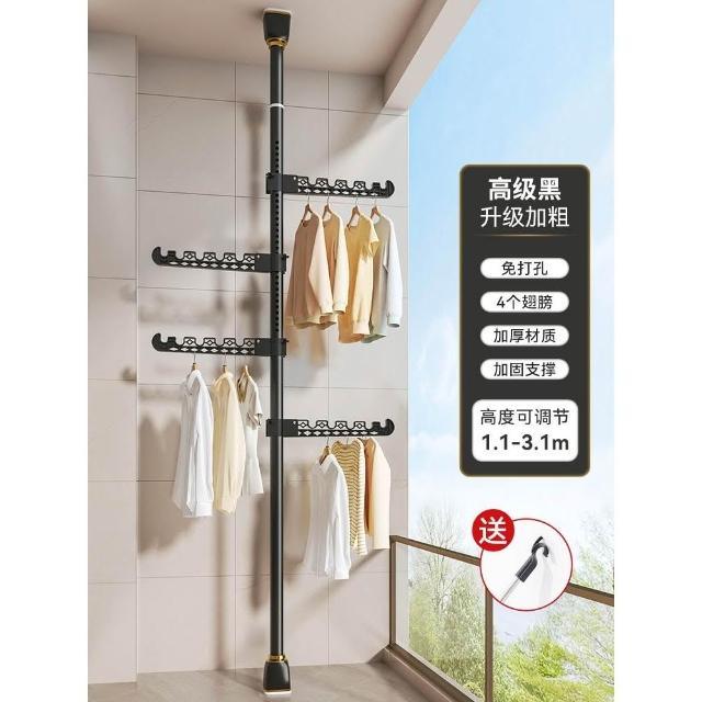 頂天立地晾衣架落地家用臥室陽臺免打孔伸縮曬衣桿省空間掛衣神器