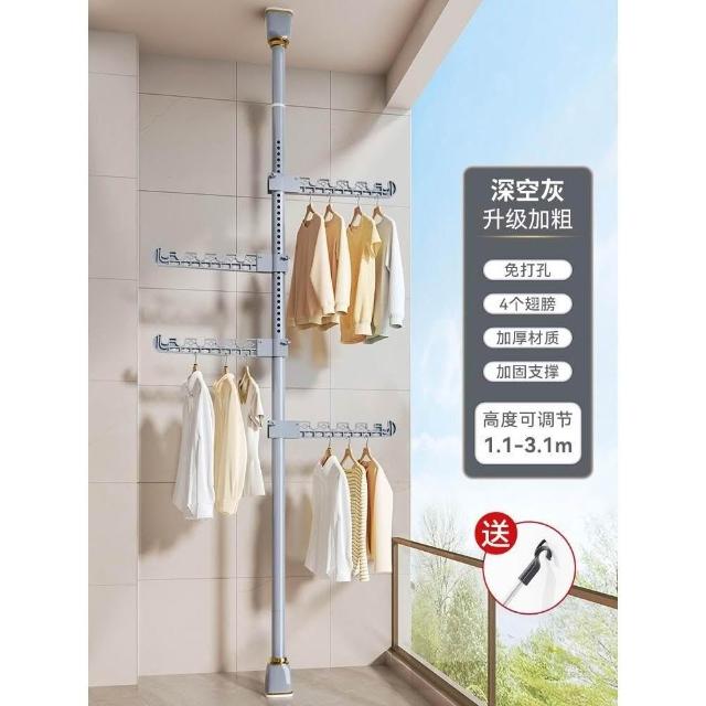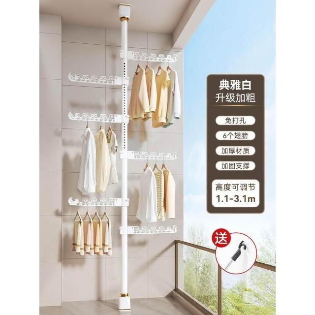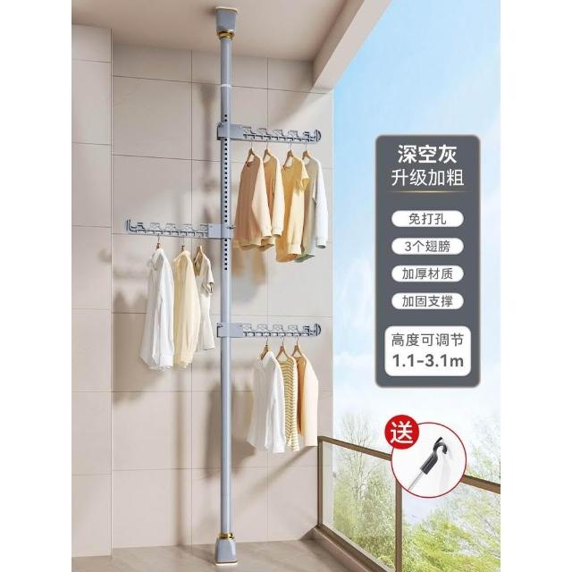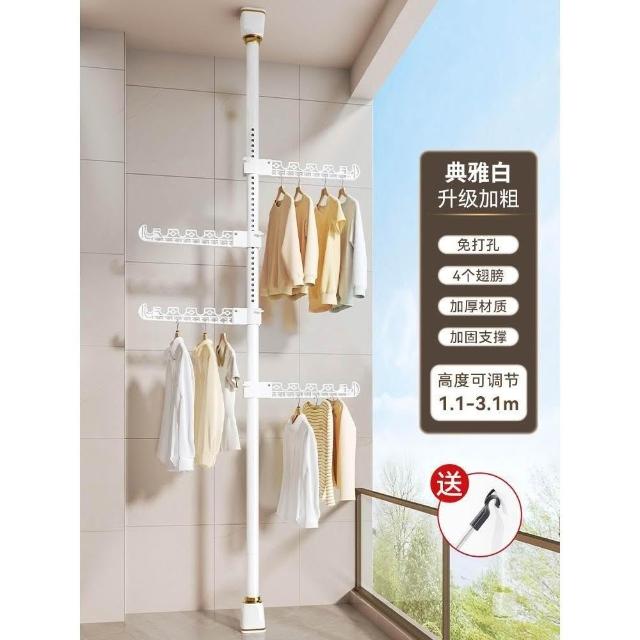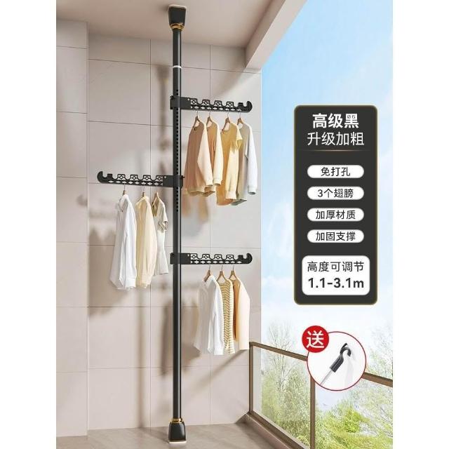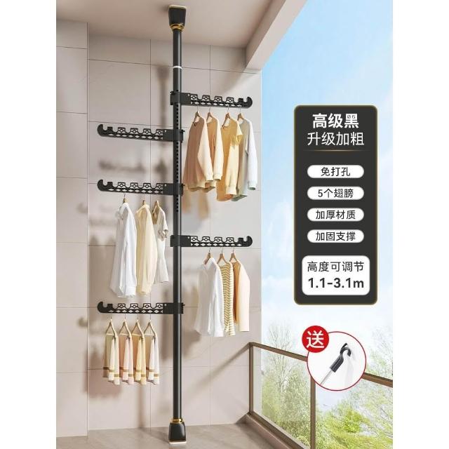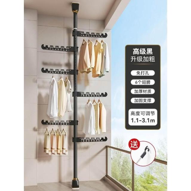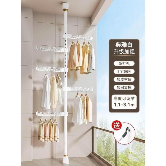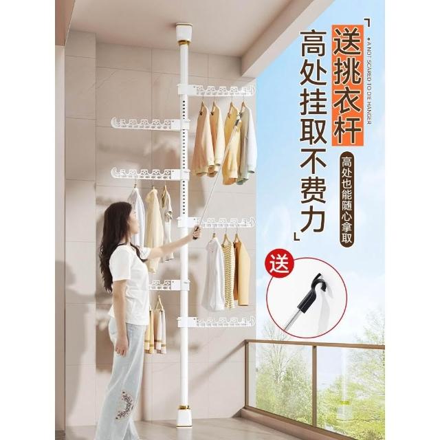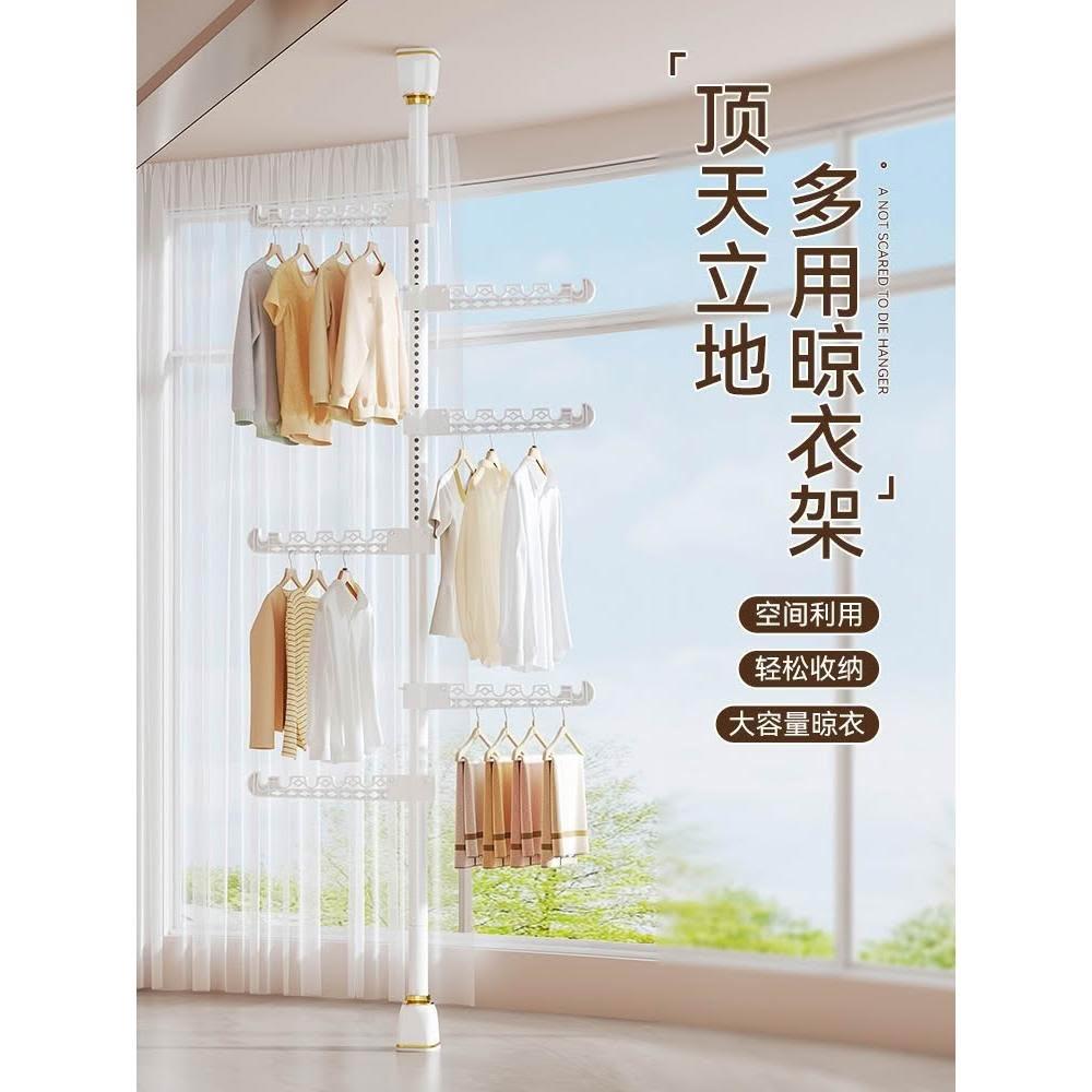 頂天立地晾衣架落地家用臥室陽臺免打孔伸縮曬衣桿省空間掛衣神器