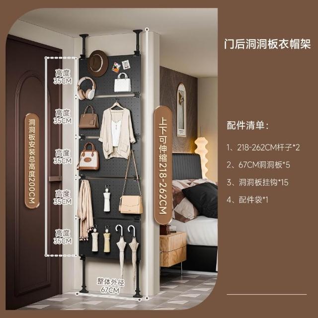 洞洞板置物架超薄门后收纳多层墙上顶天立地卧室玄关衣帽挂衣架