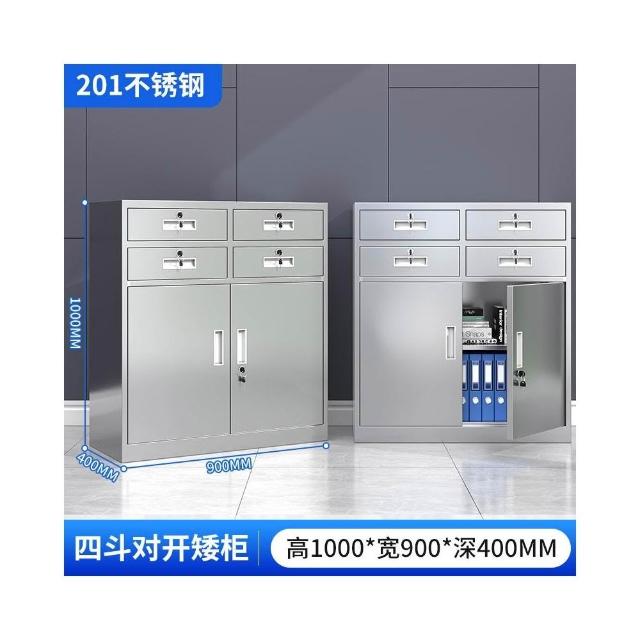 304不銹鋼矮櫃儲物櫃子抽屜帶鎖資料檔櫃床頭收納工具櫃雙開門