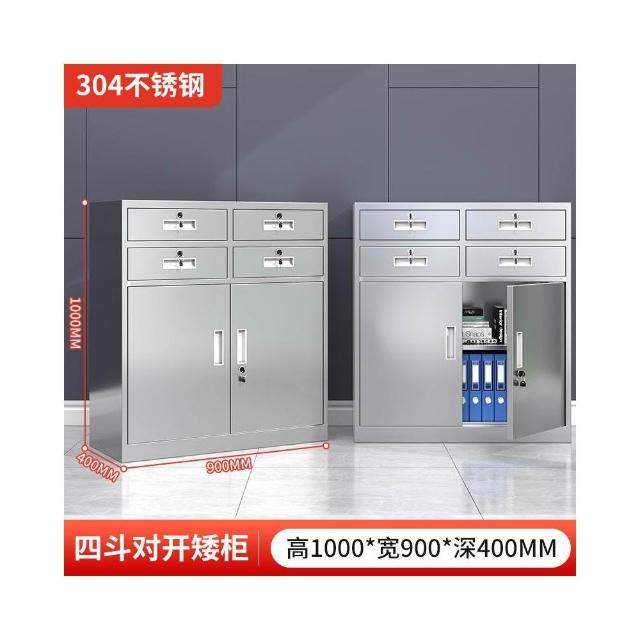 304不銹鋼矮櫃儲物櫃子抽屜帶鎖資料檔櫃床頭收納工具櫃雙開門