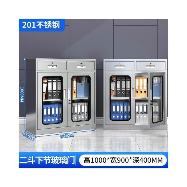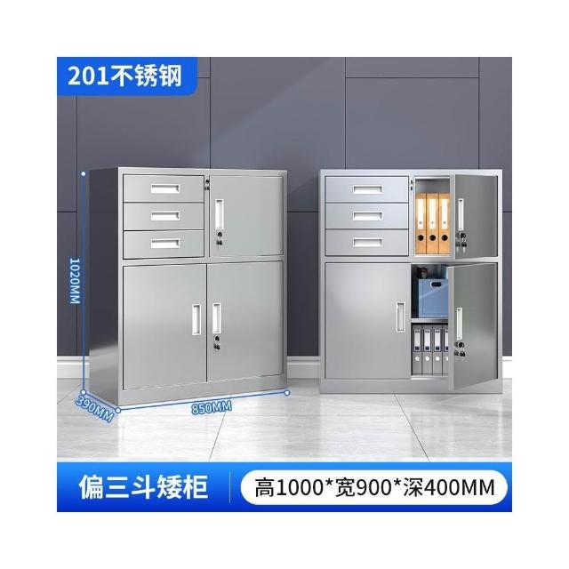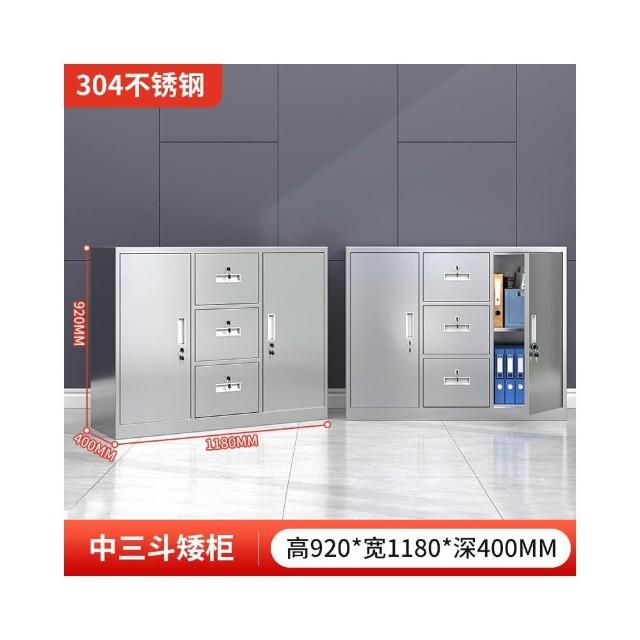 304不銹鋼矮櫃儲物櫃子抽屜帶鎖資料檔櫃床頭收納工具櫃雙開門