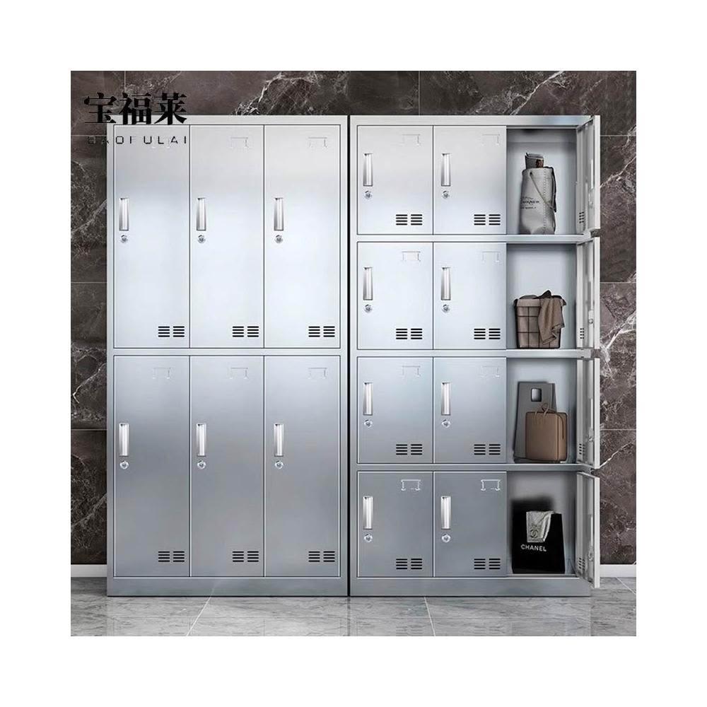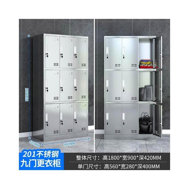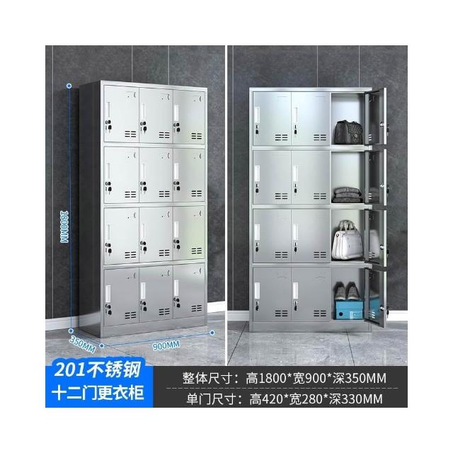 不銹鋼更衣櫃加厚斜頂更衣櫃員工多門帶鎖儲物櫃工廠宿舍更衣櫃子