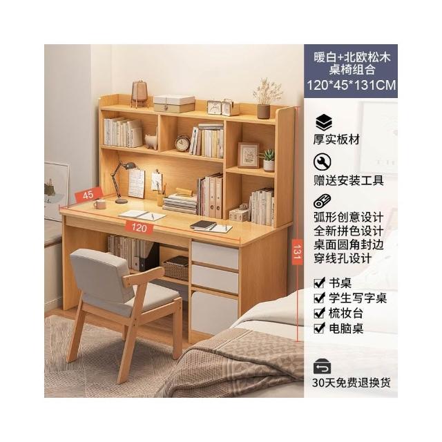 書桌學生書架書櫃一體臺式電腦桌臥室學習寫字桌子初中生辦公桌