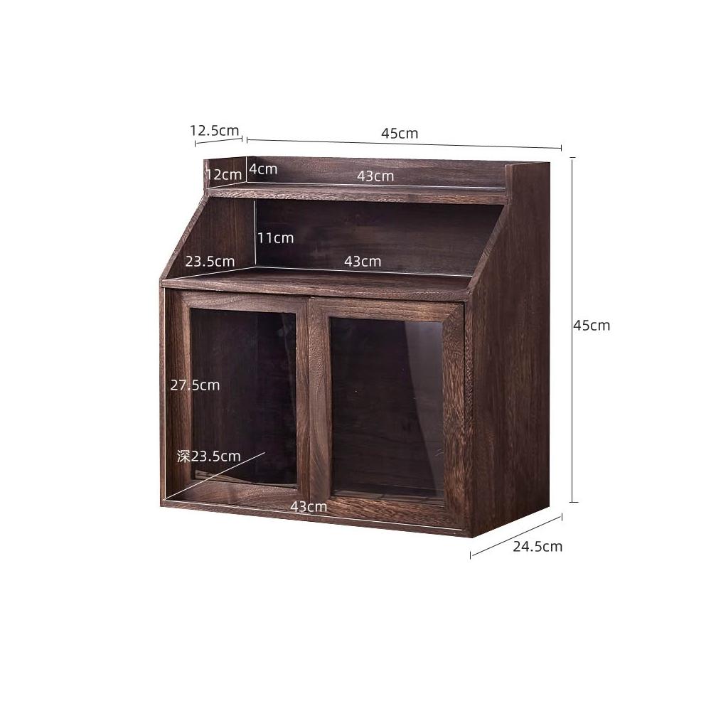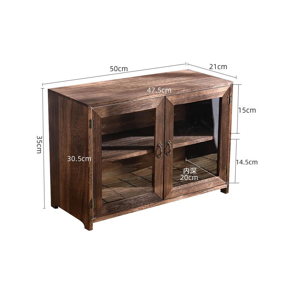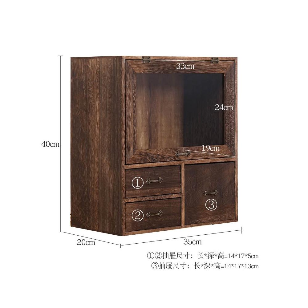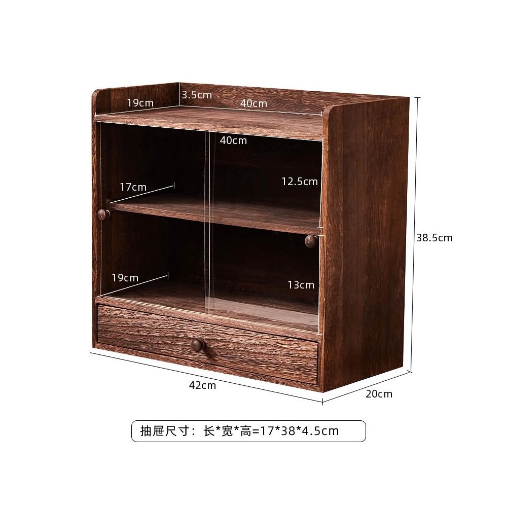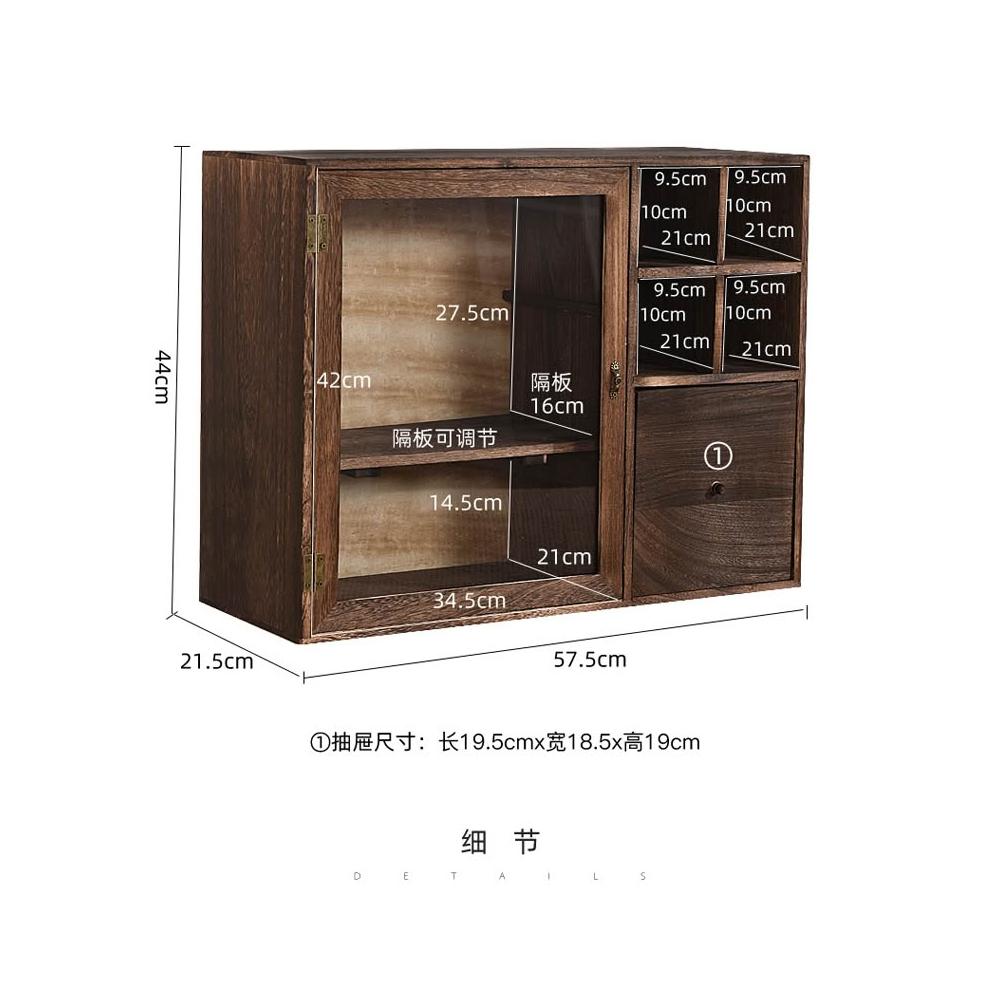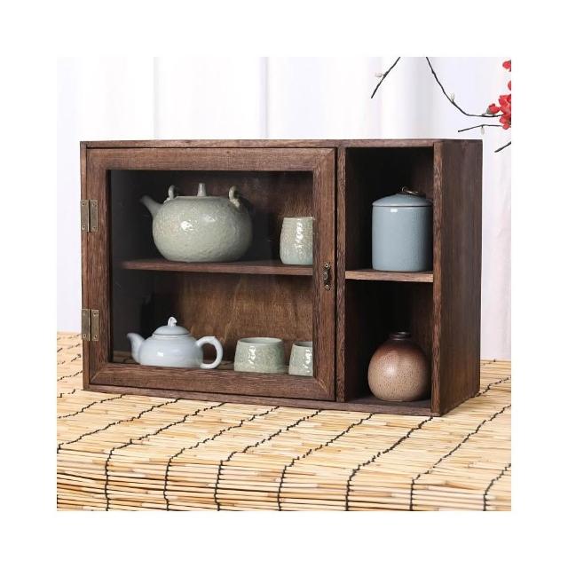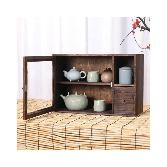 實木防塵玻璃桌面收納盒茶壺化妝品文具置物架茶具收納櫃學生念冬