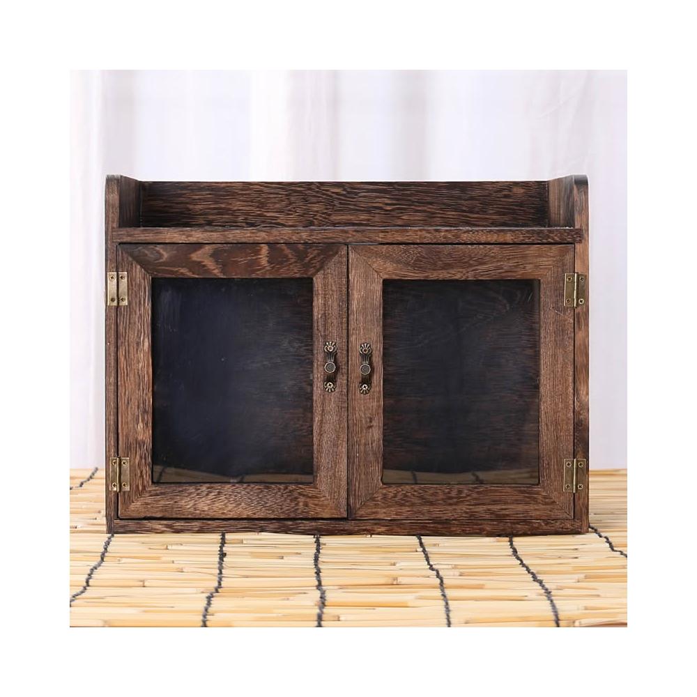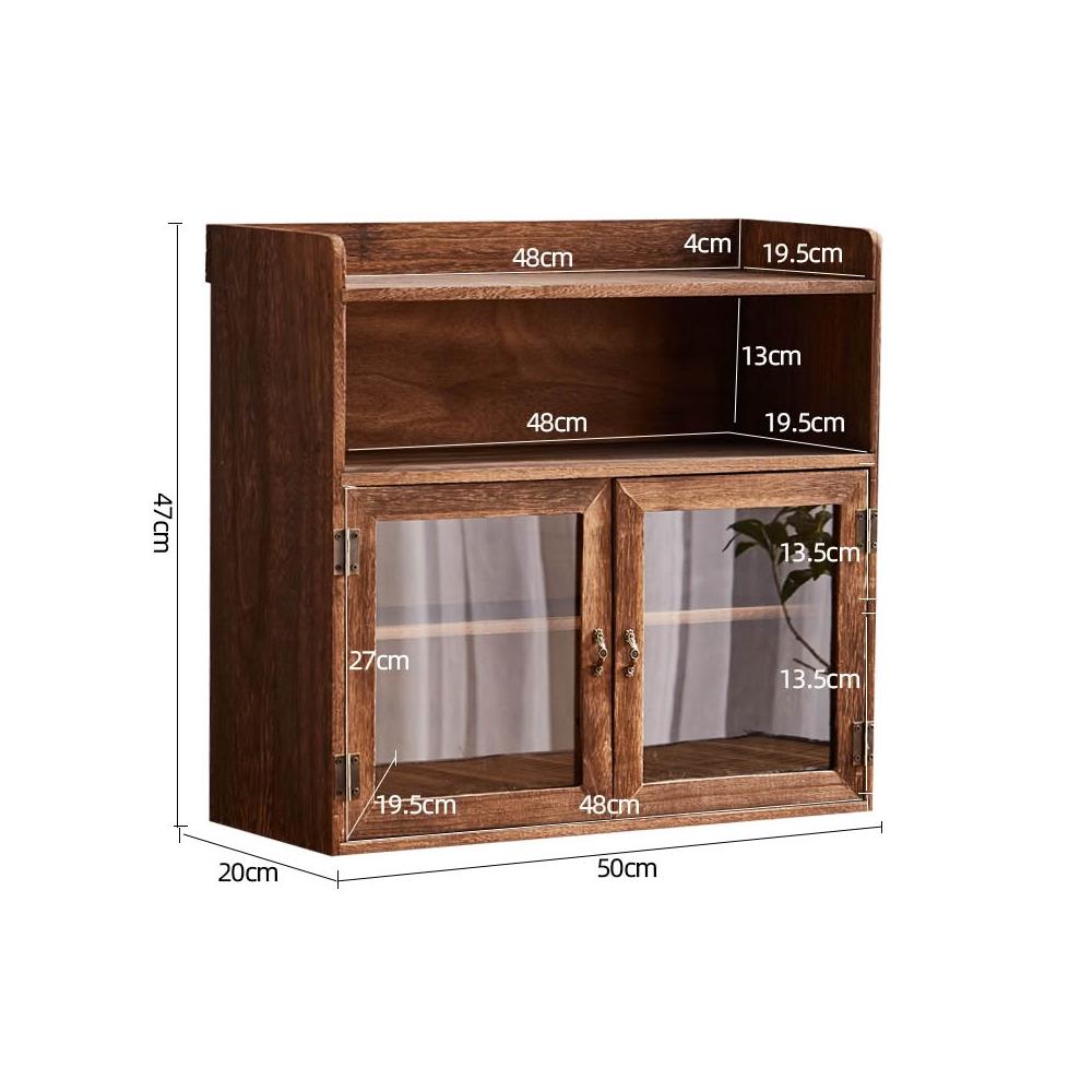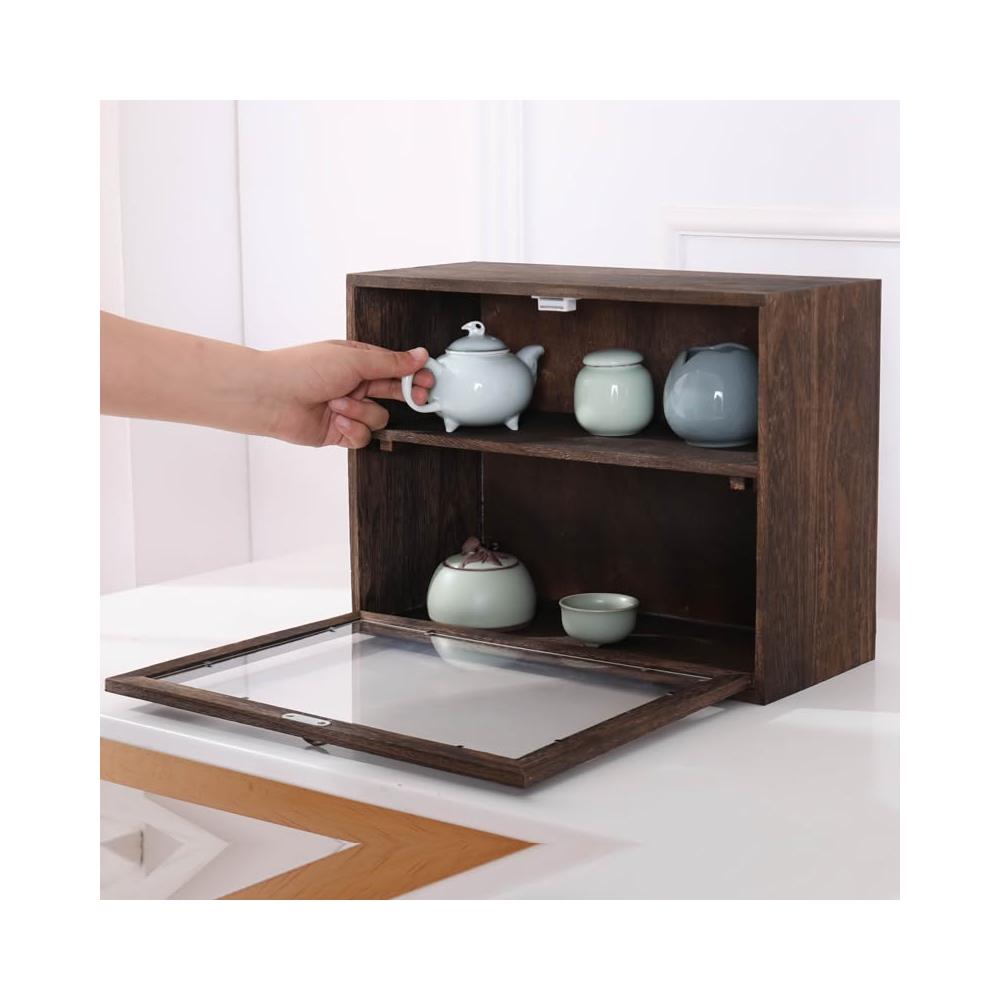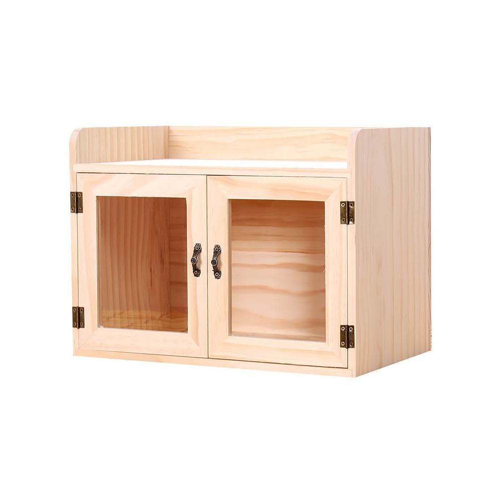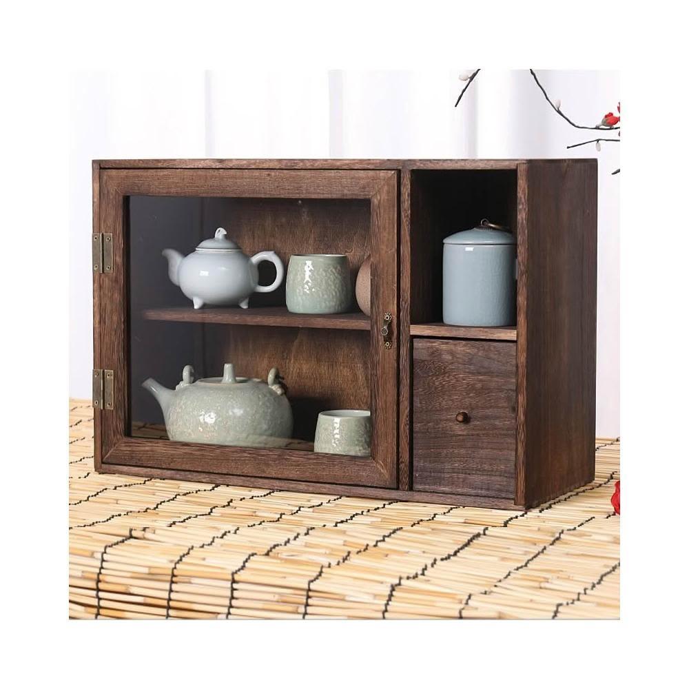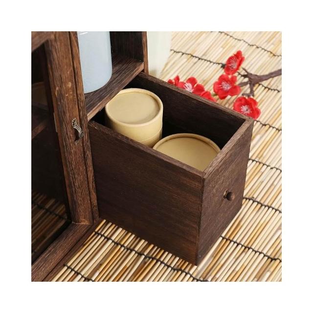 實木防塵玻璃桌面收納盒茶壺化妝品文具置物架茶具收納櫃學生念冬