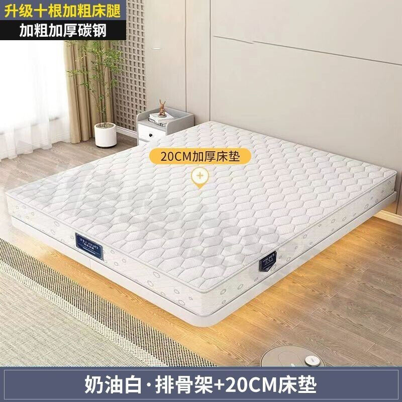 懸浮床現代簡約無床頭日式極簡靜音雙人床全鋼排骨架主臥鐵藝床架