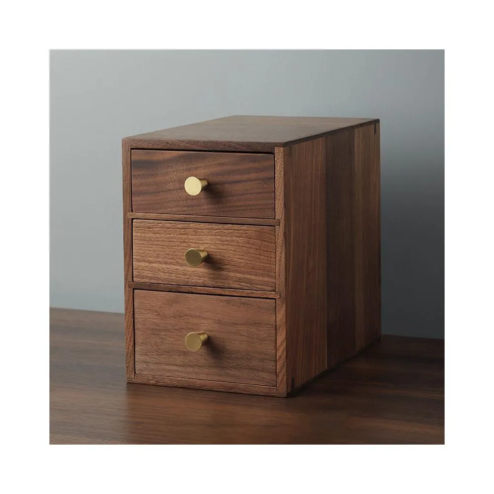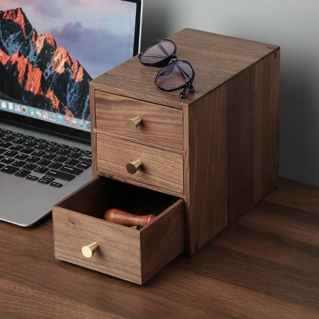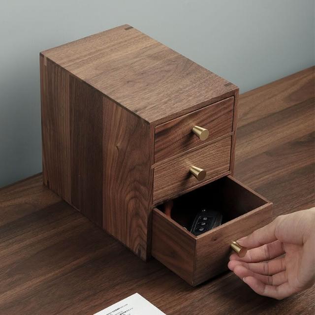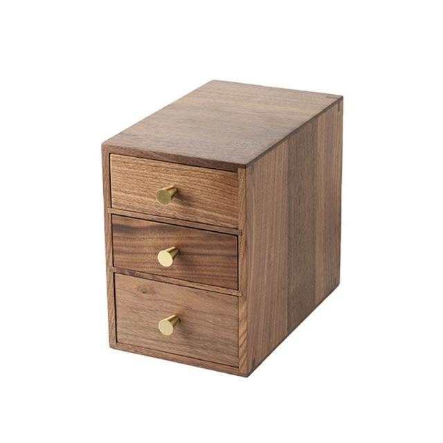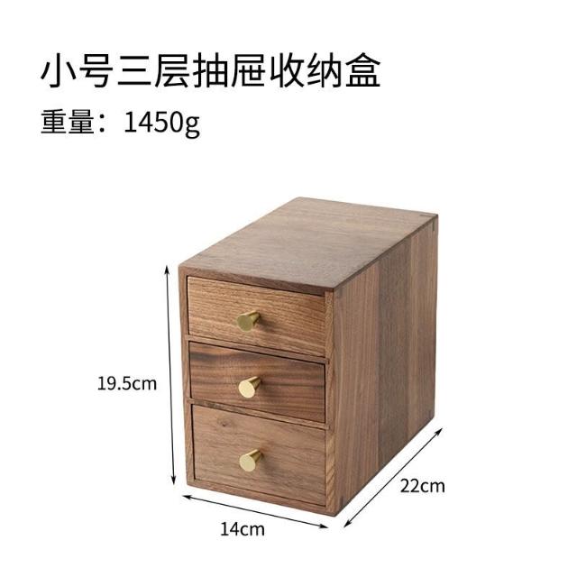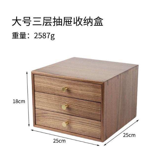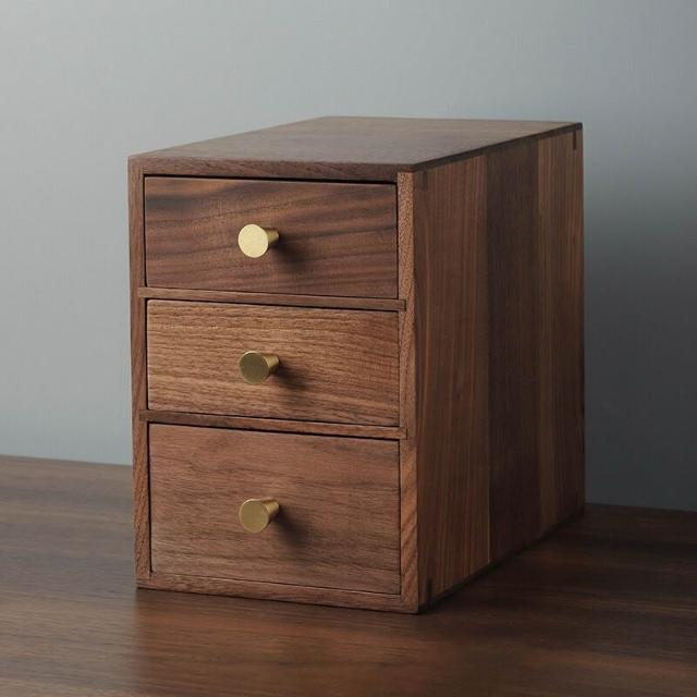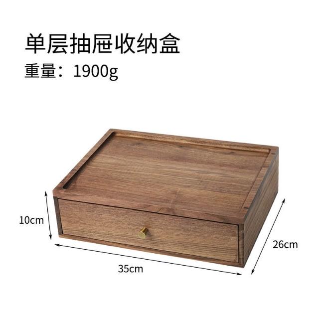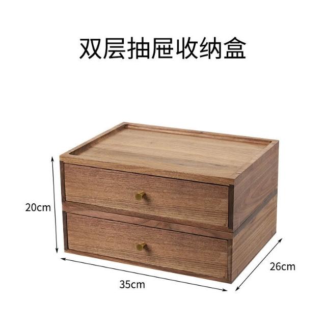 實木抽屜桌面收納盒黑胡桃小木櫃玄關桌上收納分格家用雜物小盒子
