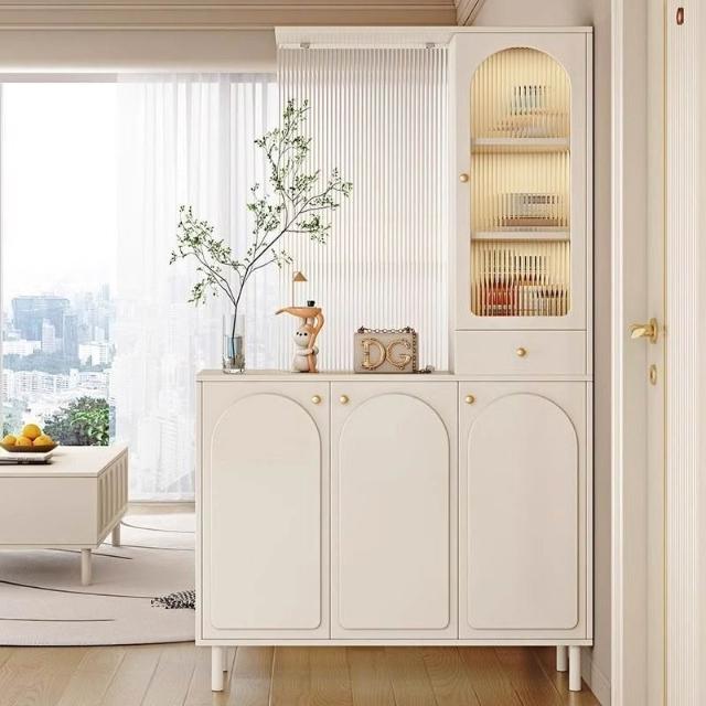 長虹玻璃鞋櫃屏風一體奶油風現代玄關隔斷櫃 櫃子