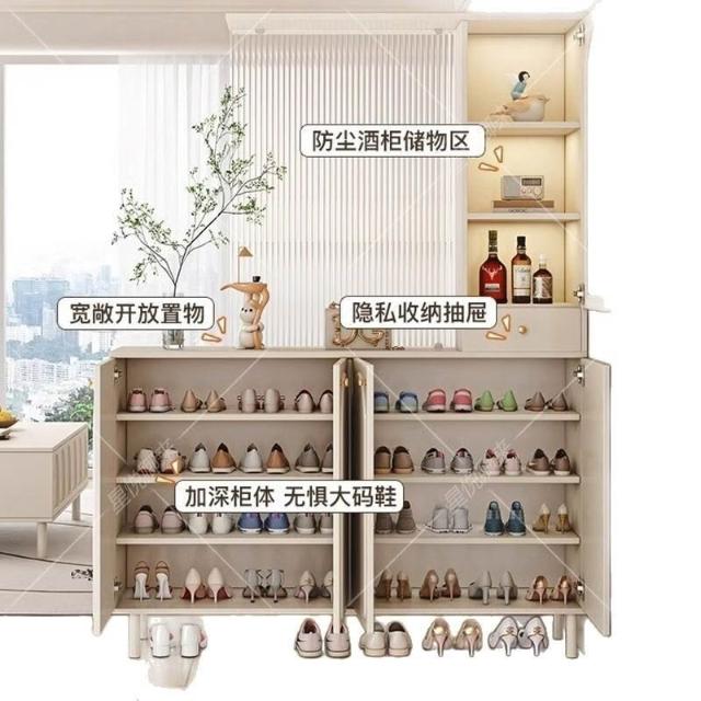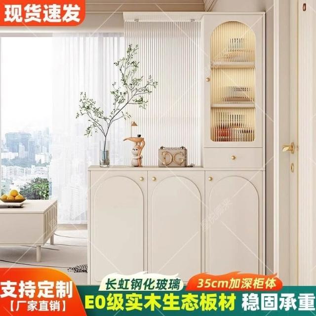 長虹玻璃鞋櫃屏風一體奶油風現代玄關隔斷櫃 櫃子