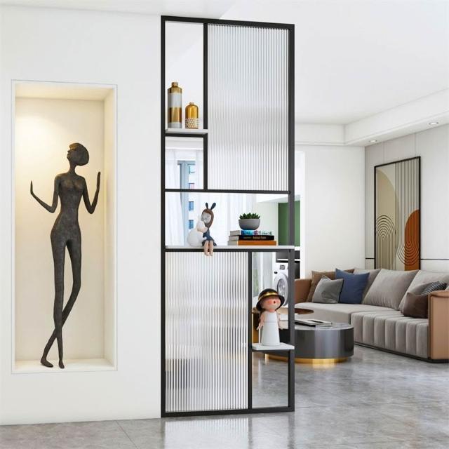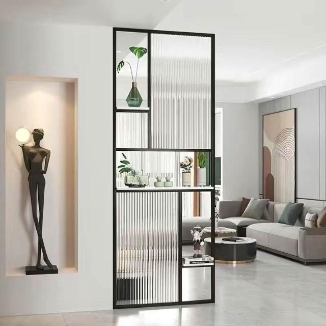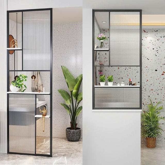 長虹玻璃隔斷玄關入戶客廳現代簡約網紅洗漱臺隔墻架輕奢鐵藝屏風