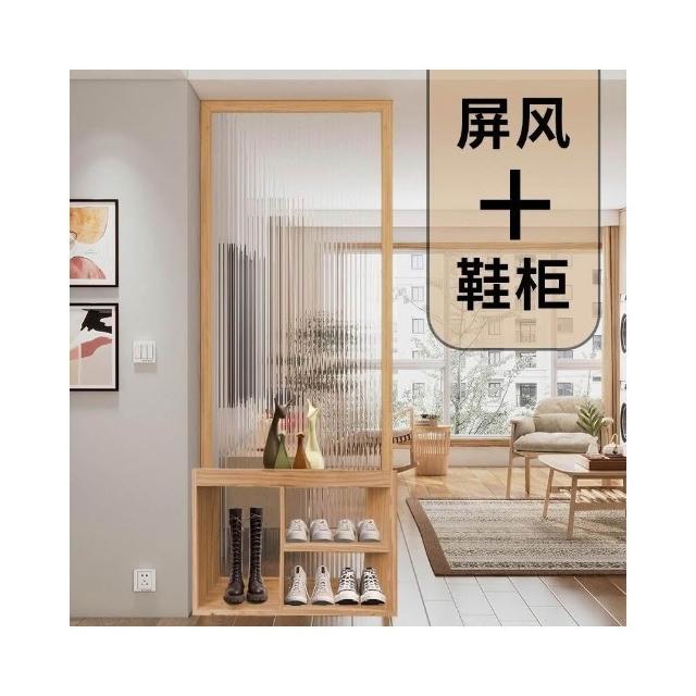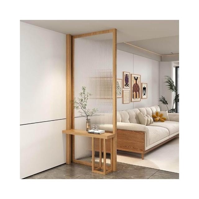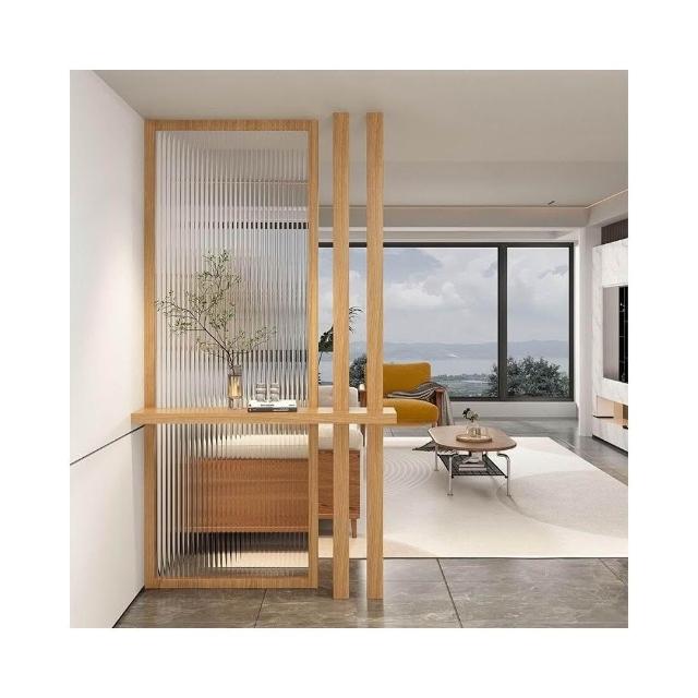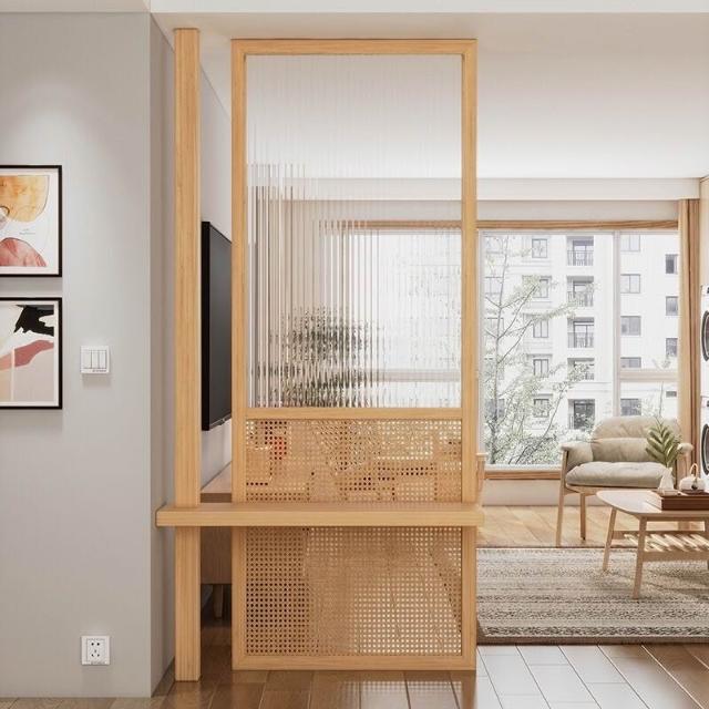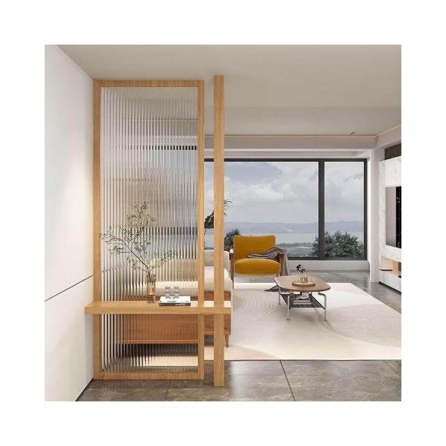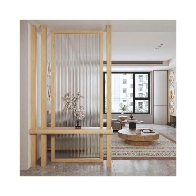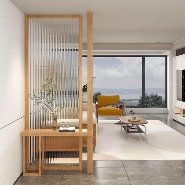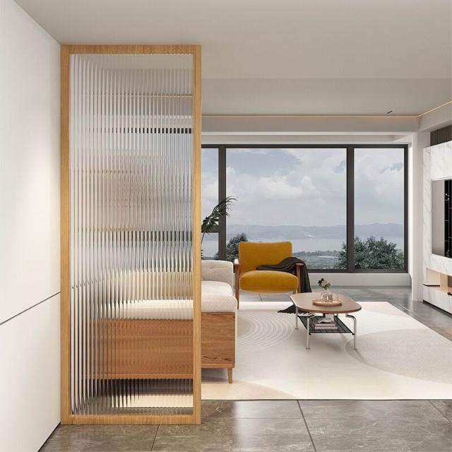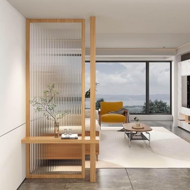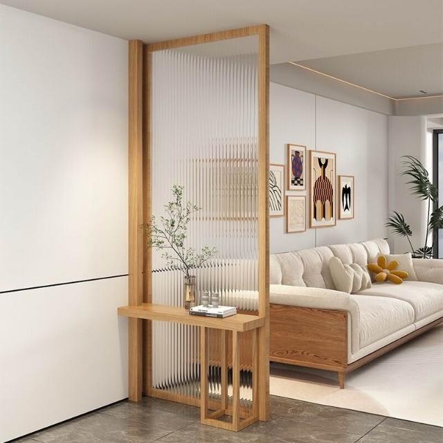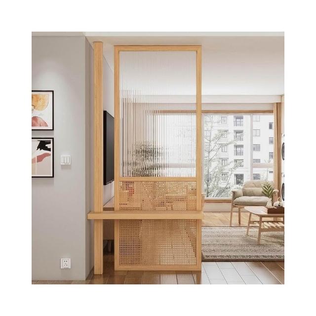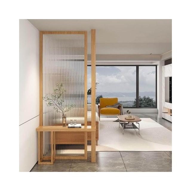 日式實木屏風鋼化長虹玻璃隔斷水紋北歐創意入戶玄關餐廳原木遮擋