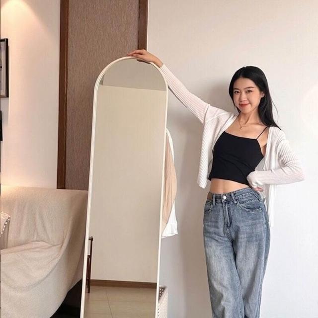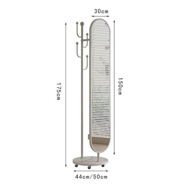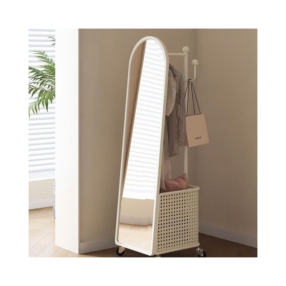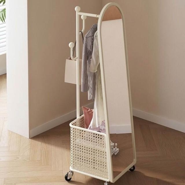 奶油風全身鏡旋轉穿衣鏡試衣鏡移動落地式掛衣架落地鏡一體衣帽架