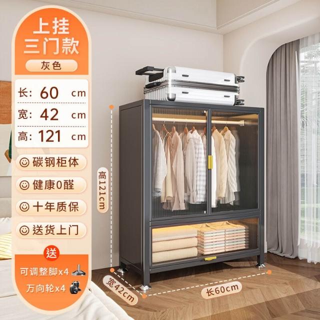 家用新款碳鋼衣櫃臥室大容量多功能收納櫃儲物櫃一體靠墻防塵衣櫥