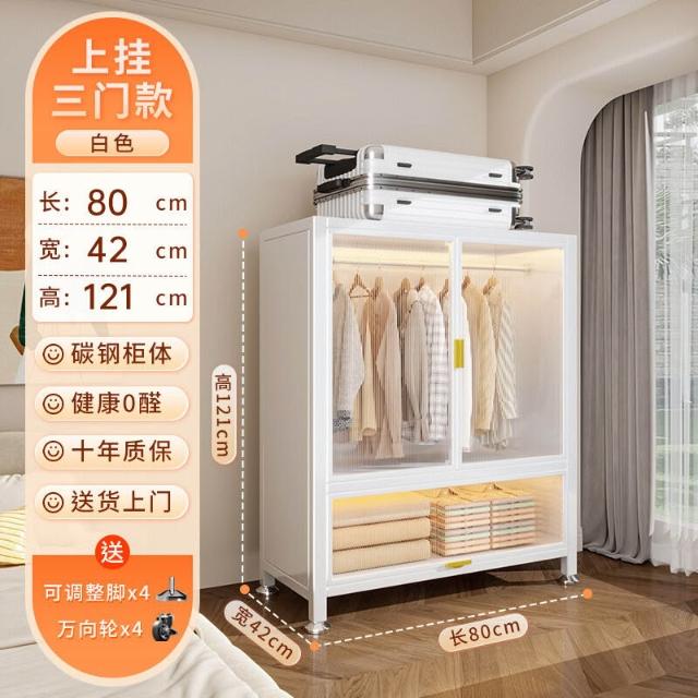 家用新款碳鋼衣櫃臥室大容量多功能收納櫃儲物櫃一體靠墻防塵衣櫥