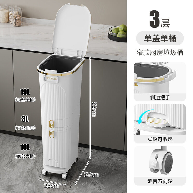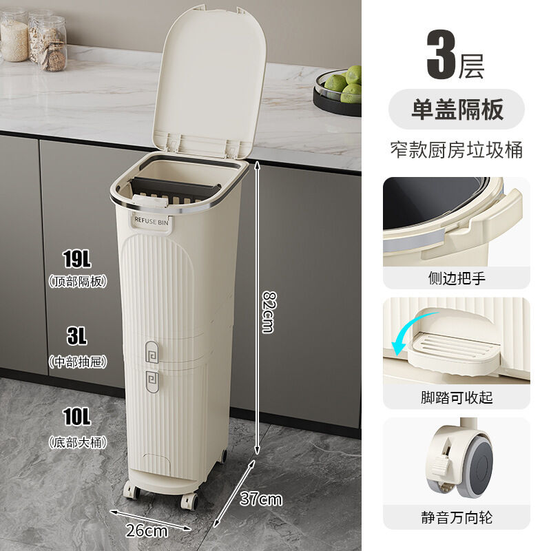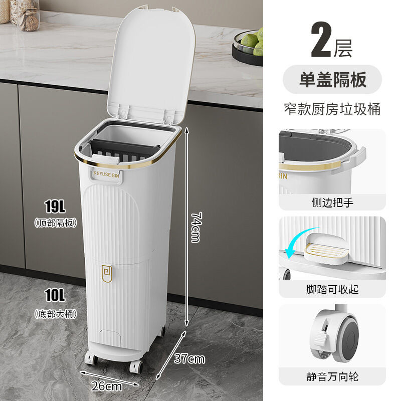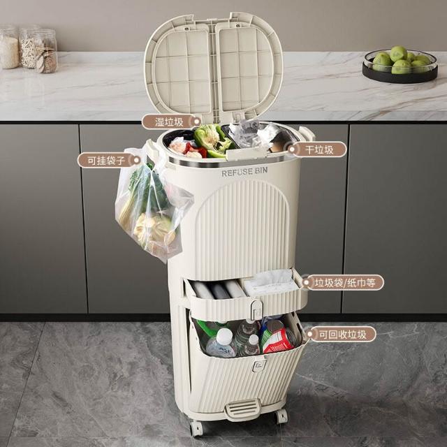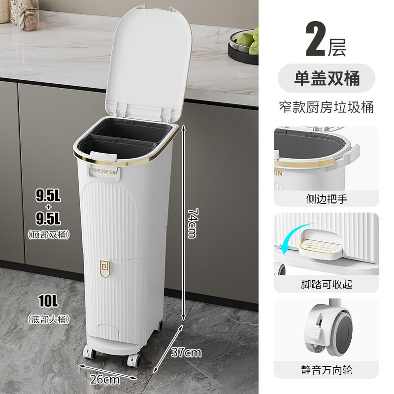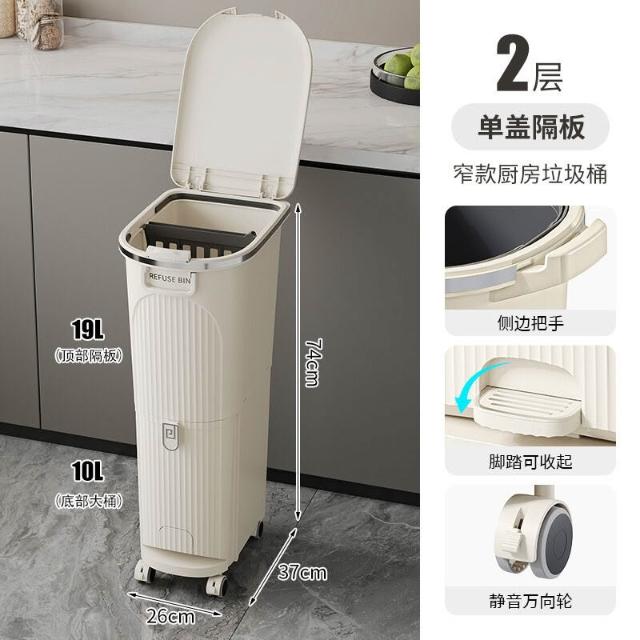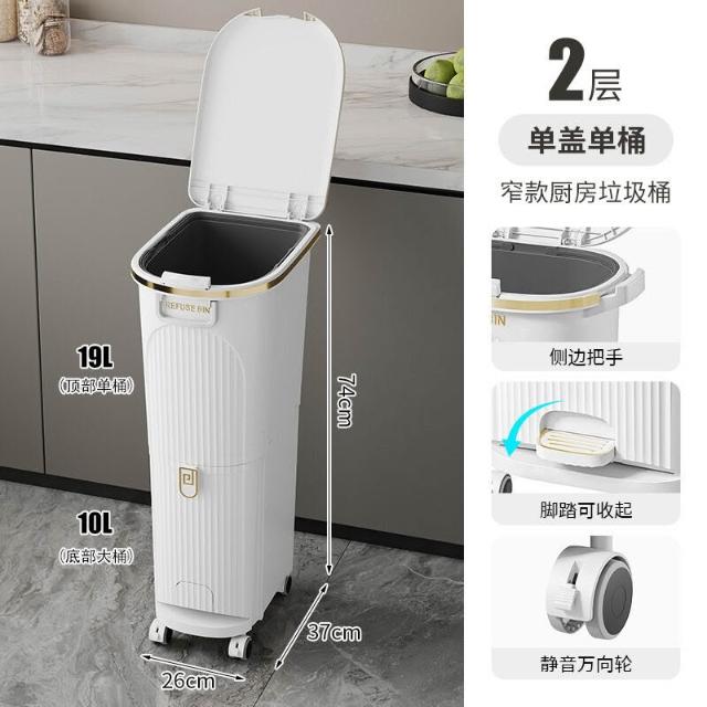 廚房垃圾桶按壓帶蓋多功能幹濕兩用分類日式家用可移動夾縫收納桶