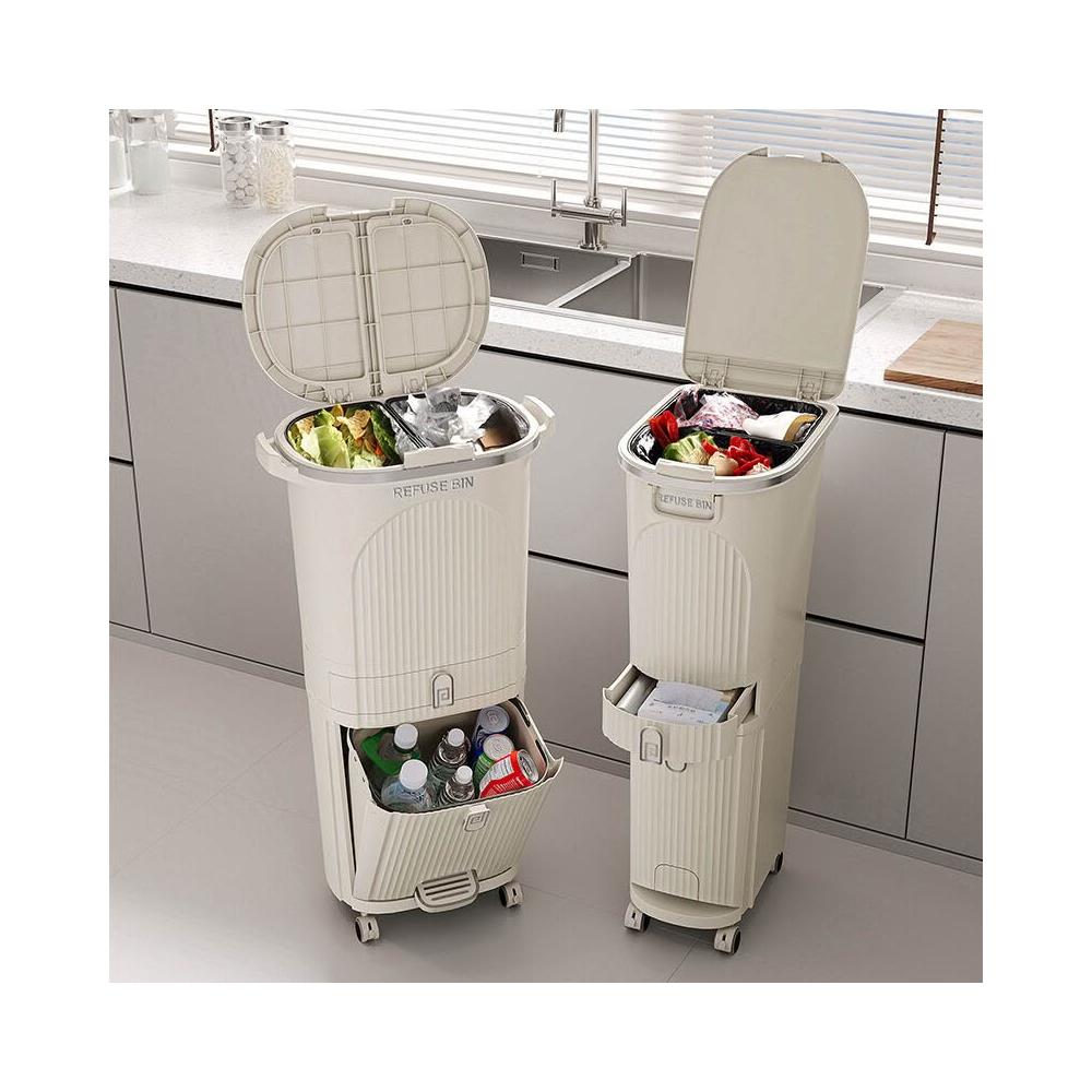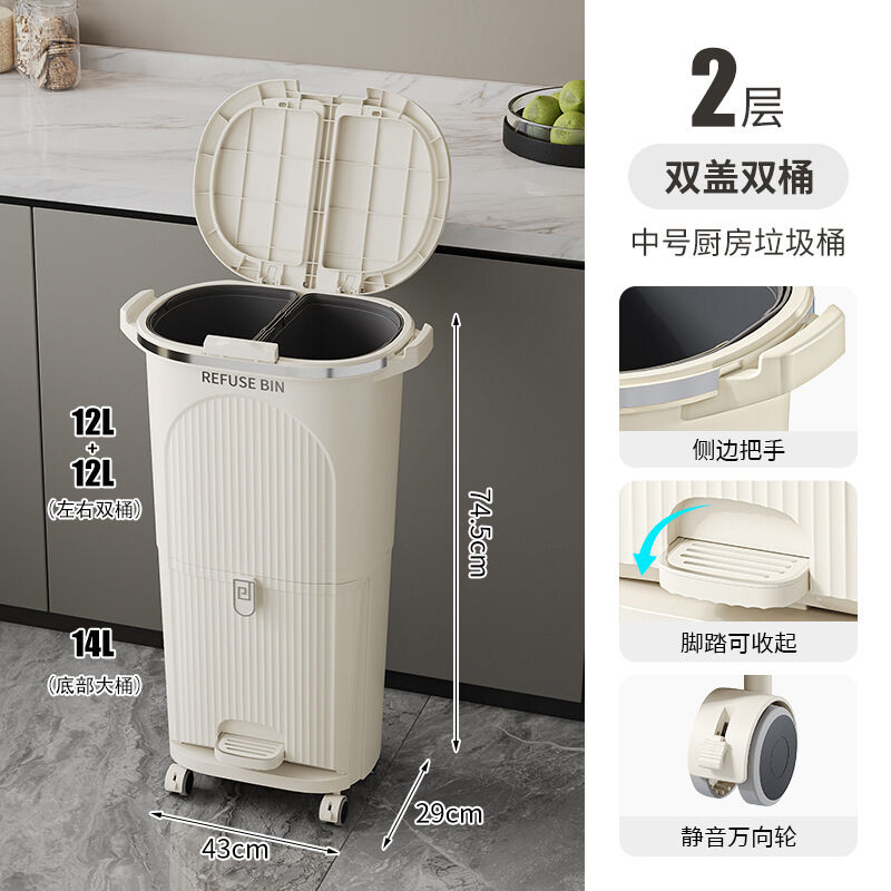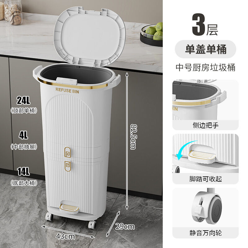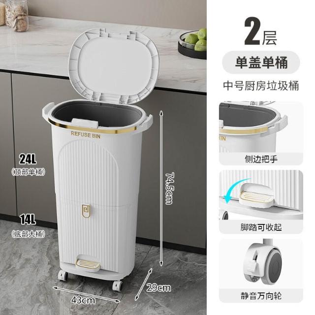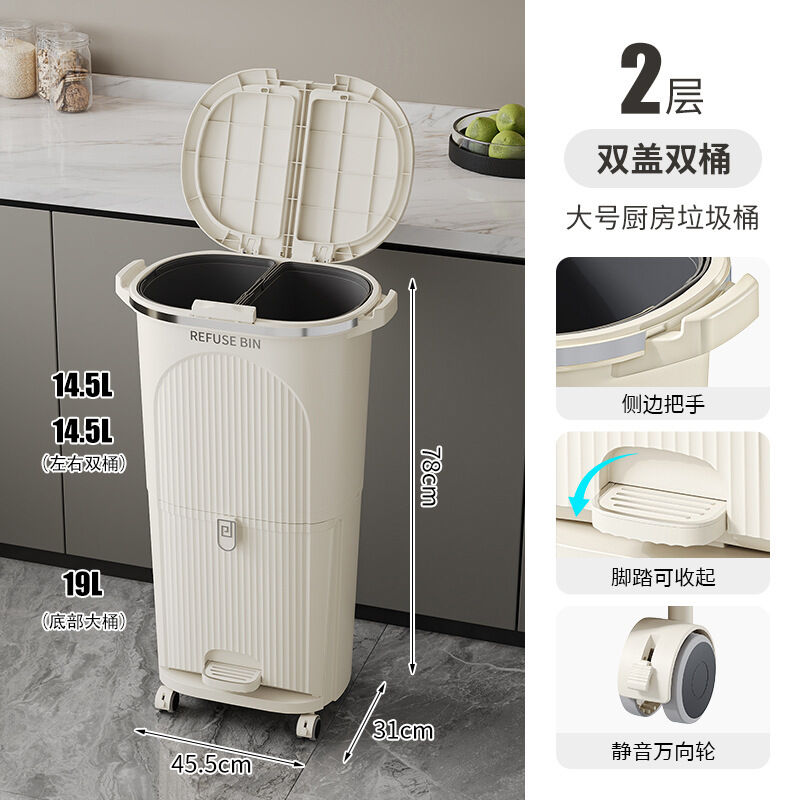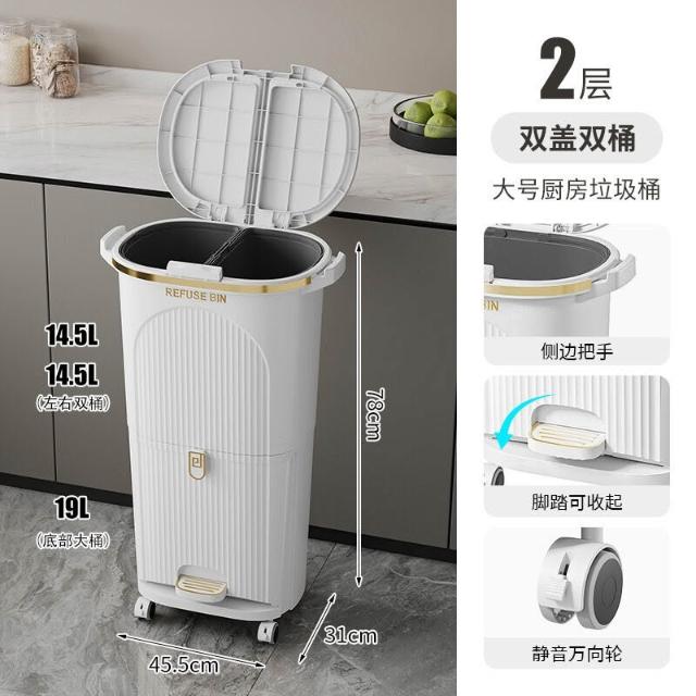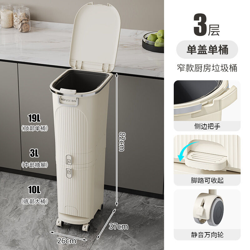 廚房垃圾桶按壓帶蓋多功能幹濕兩用分類日式家用可移動夾縫收納桶