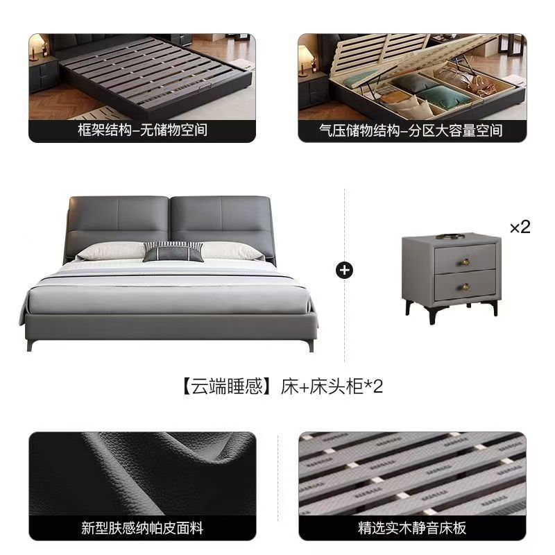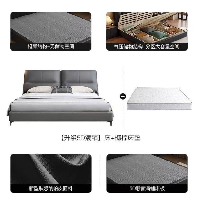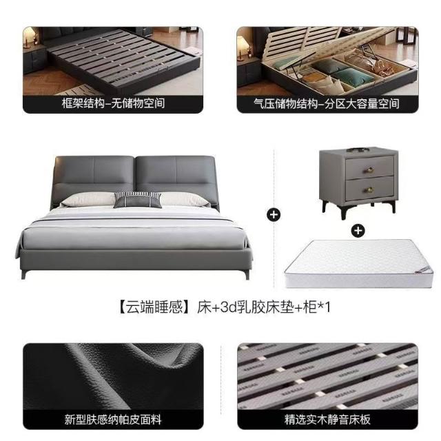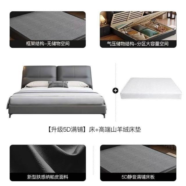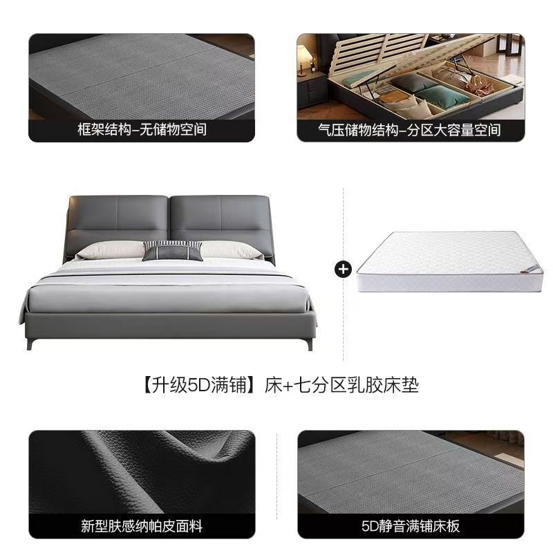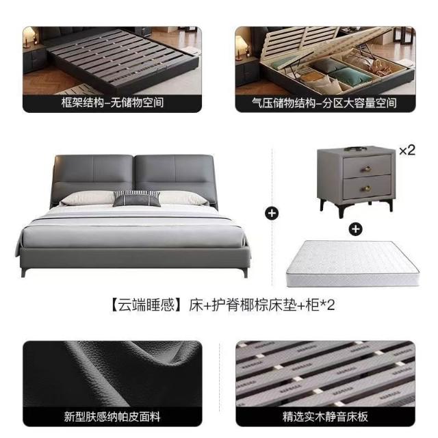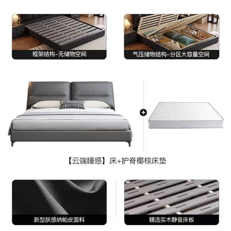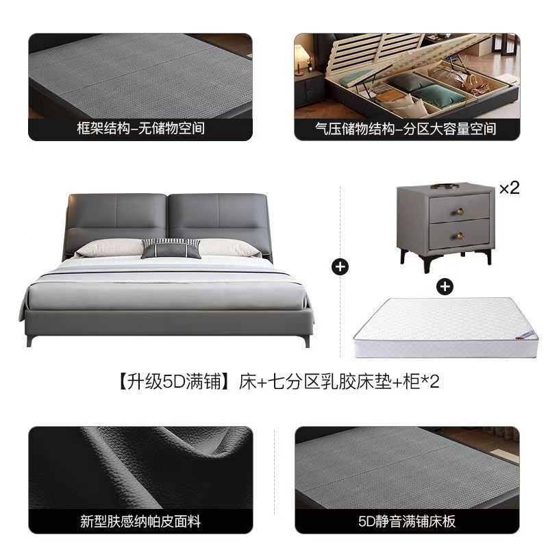 現代簡約輕奢真皮床主臥室小戶型1.5米雙人新款高端儲物皮藝大床